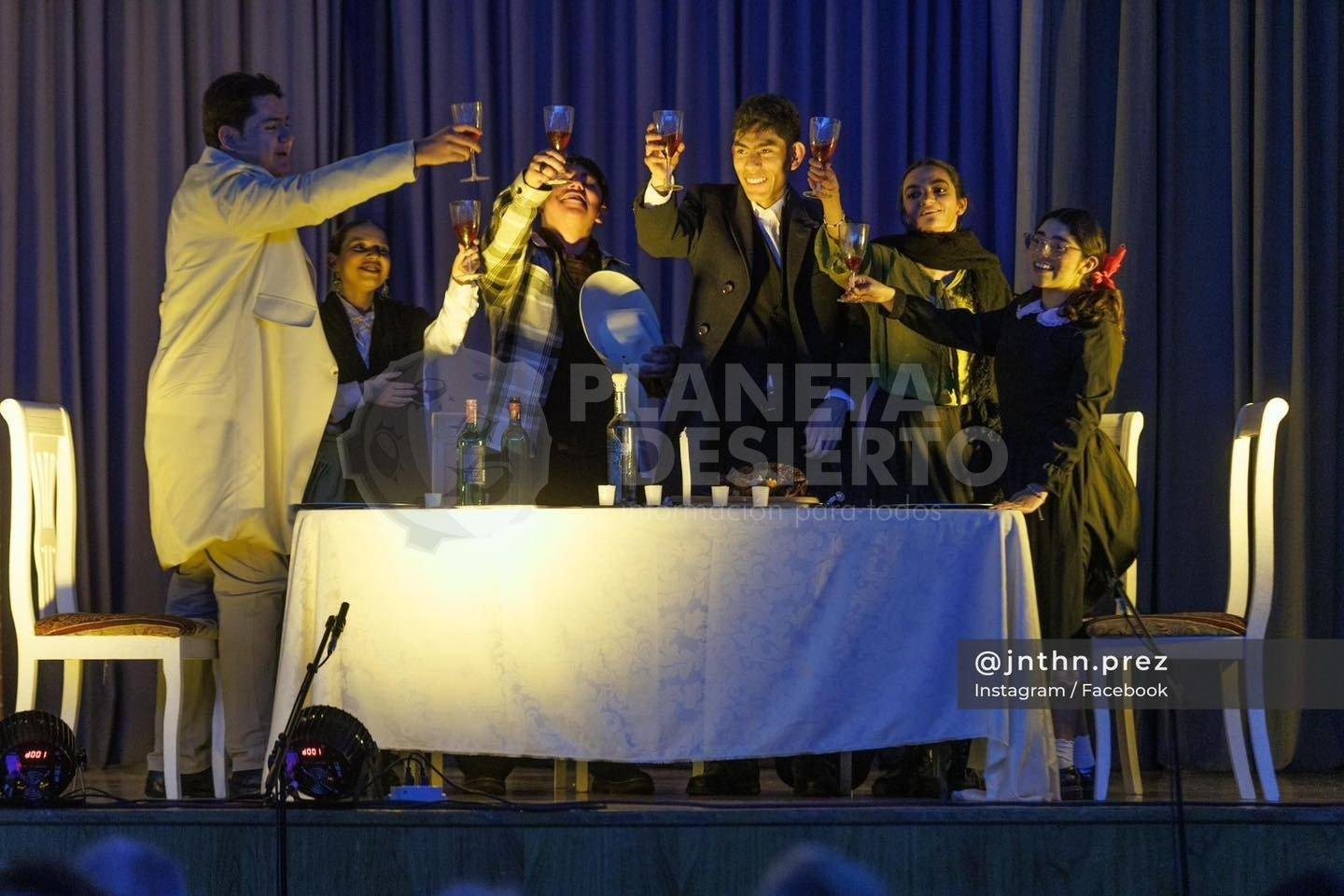 Morelia, MichoacΓ‘n, a 10 de diciembre de 2024.- Basada en la obra β€œA Carol Christmas” del escritor Charles Dickens, β€œCuento de Navidad” fue la obra que los alumnos y alumnas de la Facultad de Ciencias de la ComunicaciΓ³n de la UVAQ escenificaron con Γ©xito, y de manera gratuita para sus padres de familia, comunidad educativa y pΓΊblico en general, en el auditorio β€˜CΓ©sar Nava’ de dicha universidad, este miΓ©rcoles 10 de diciembre de 2024 por la tarde.