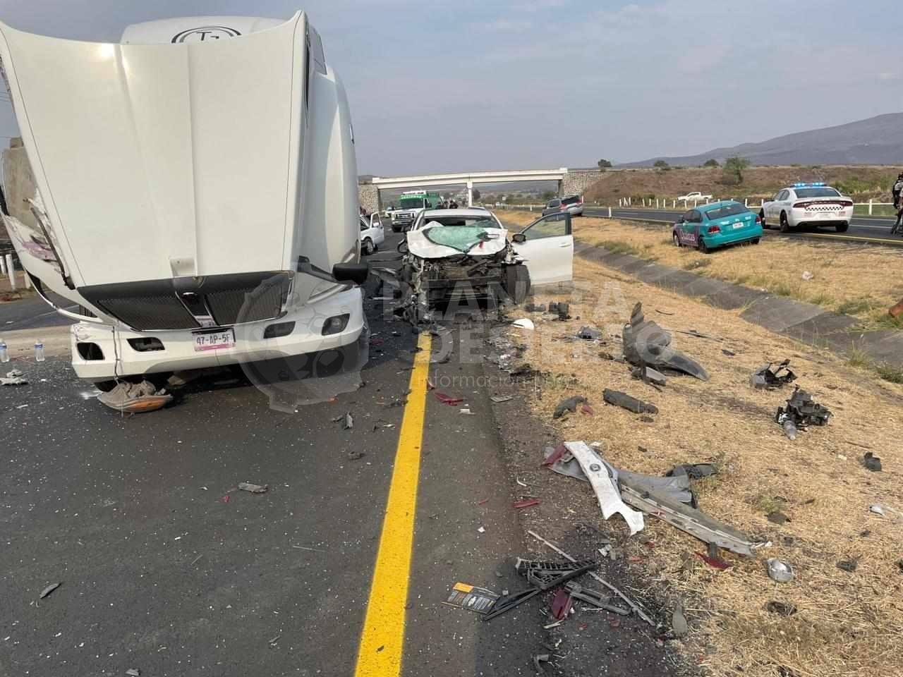 Se conoció que las otras unidades involucradas son, un tracto camión con plataforma marca Kenworth de color blanco, así como un auto Kia Forte, color blanco, matrícula JRD-81-54 del estado de Jalisco.