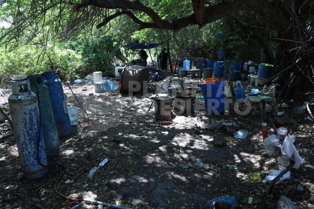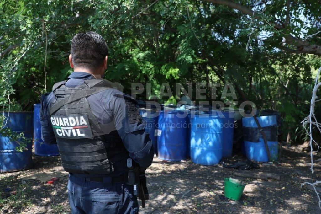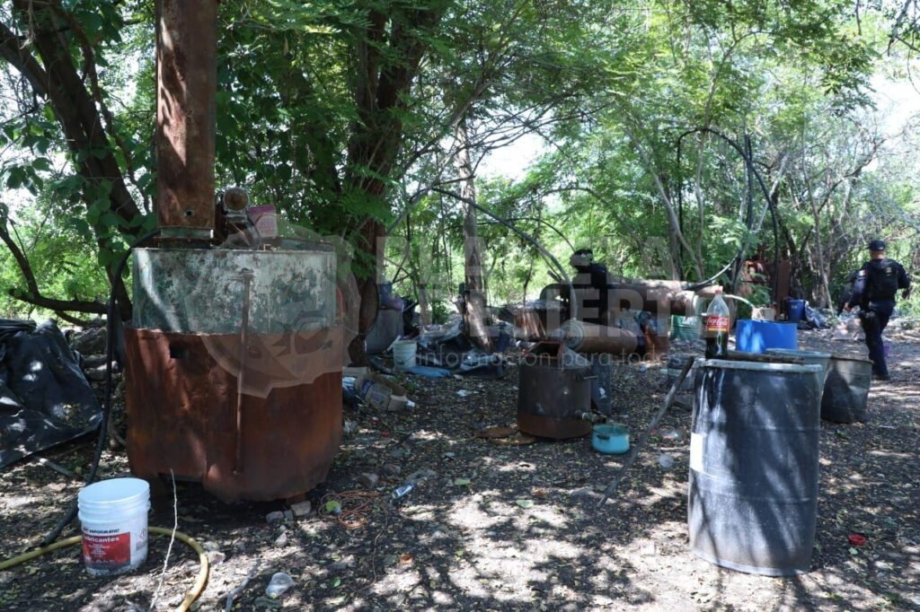 Posteriormente los guardias civiles, soldados y guardias nacionales, en una zona cerril, ubicaron y destruyeron un laboratorio clandestino en el que los criminales usaban tres reactores para la fabricación de drogas sintéticas.