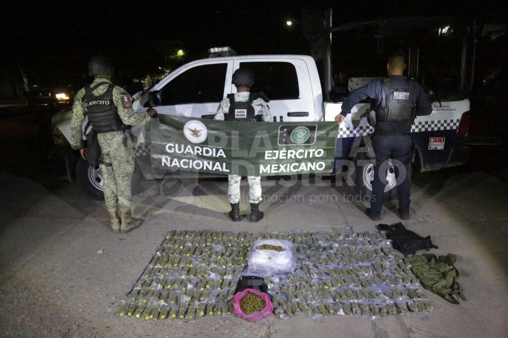 Finalmente, y durante patrullajes en la misma localidad de “La Ruana”, personal de la Base de Operaciones Interinstitucionales, localizó 900 dosis de mariguana listas para su comercialización en el mercado negro.