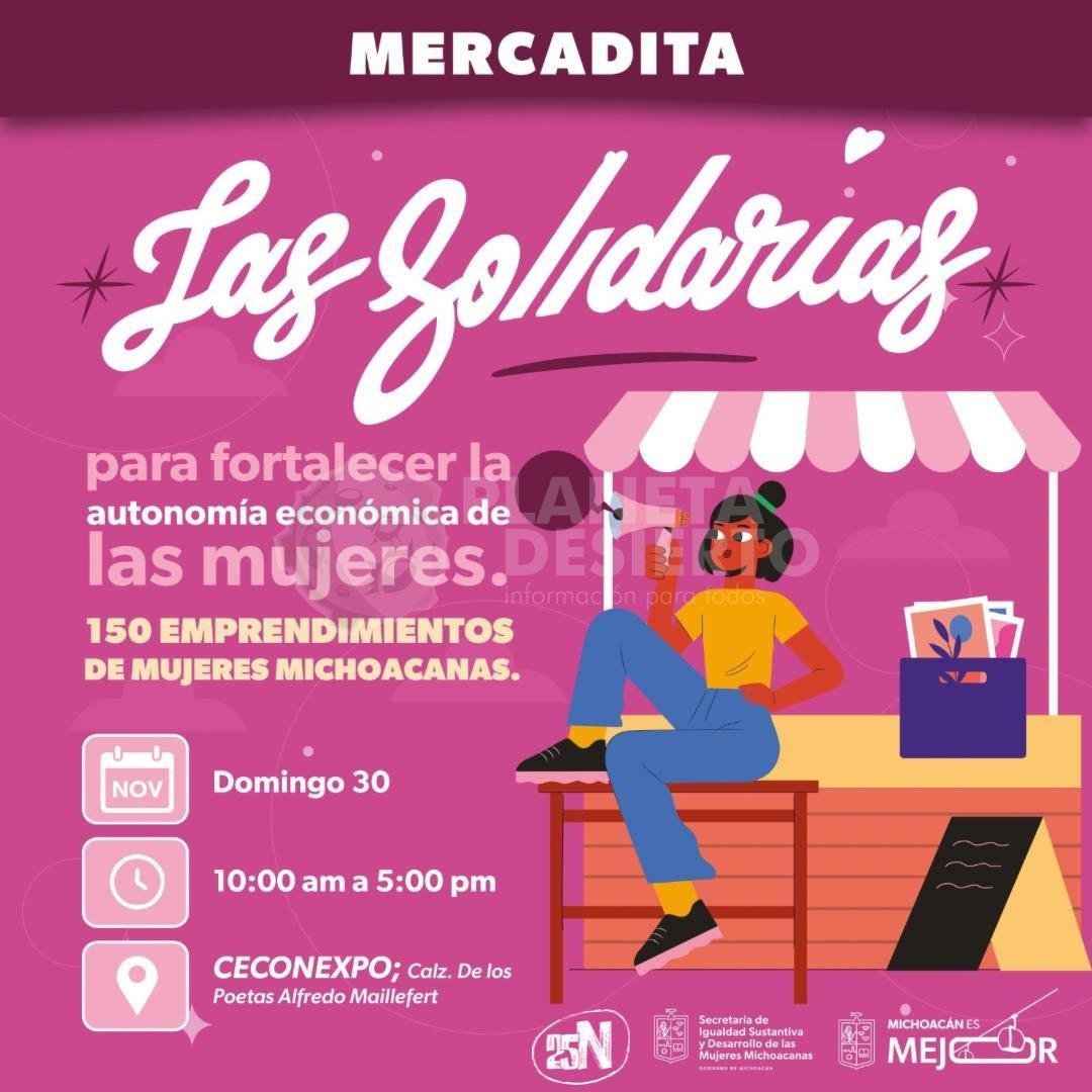 “La autonomía económica es uno de los pilares para construir igualdad. Con Las Solidarias estamos reconociendo el talento, el trabajo y la fuerza de las mujeres michoacanas que todos los días sostienen a sus familias y a sus comunidades”, afirmó la titular de la Seimujer. Durante la Mercadita, las participantes ofrecerán una gran variedad de productos, entre ellos: artesanías, bisutería, alimentos, ropa, productos ecológicos, artículos para mascotas y mucho más.
