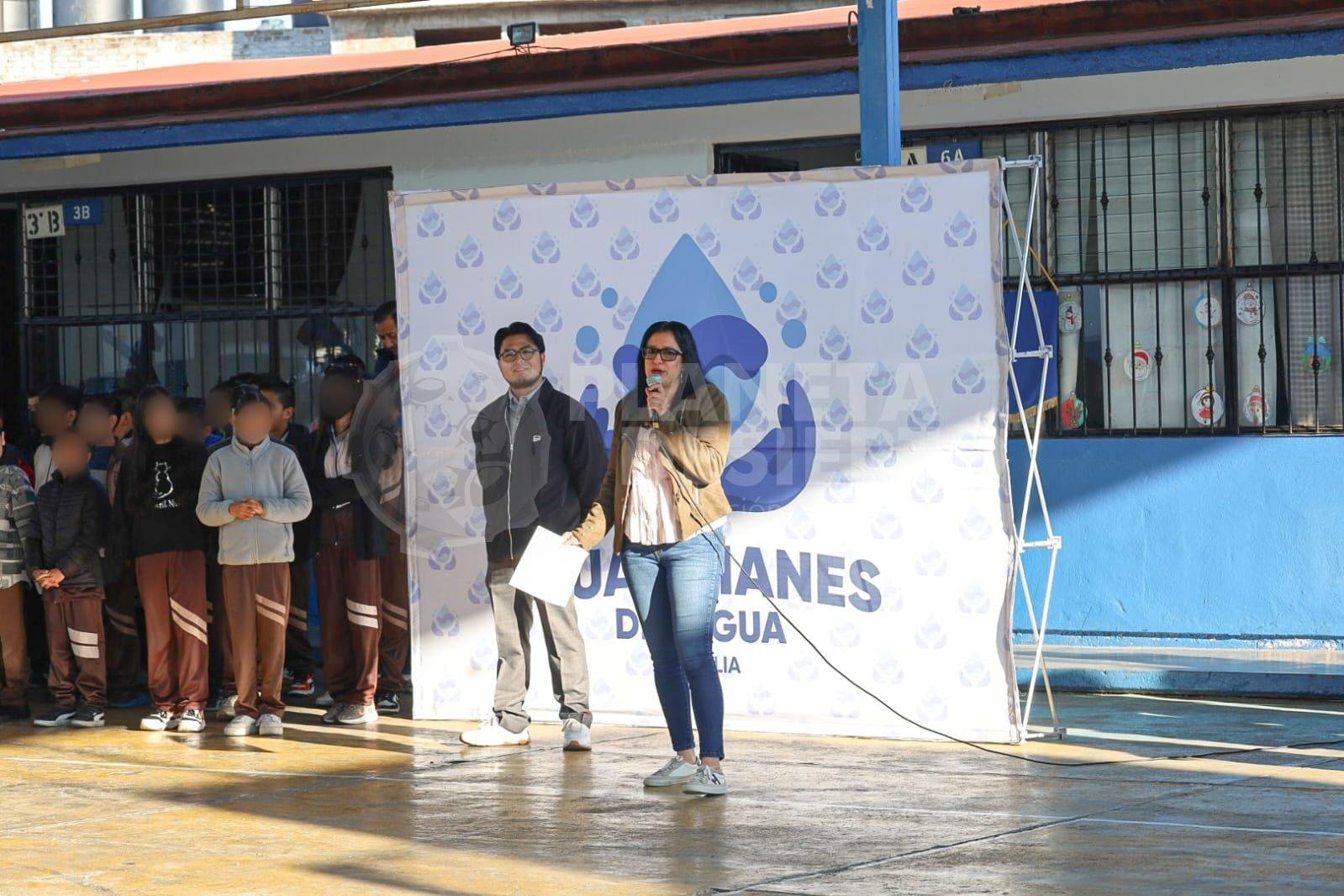 Morelia, Michoacán 09 de febrero de 2026.–Con el objetivo de fomentar desde la infancia una cultura de cuidado y uso responsable del agua, el Organismo Operador de Agua Potable, Alcantarillado y Saneamiento de Morelia (Ooapas), a través de su Departamento de Cultura del Agua, continúa llevando el programa Guardianes del Agua a distintas escuelas de la ciudad.
