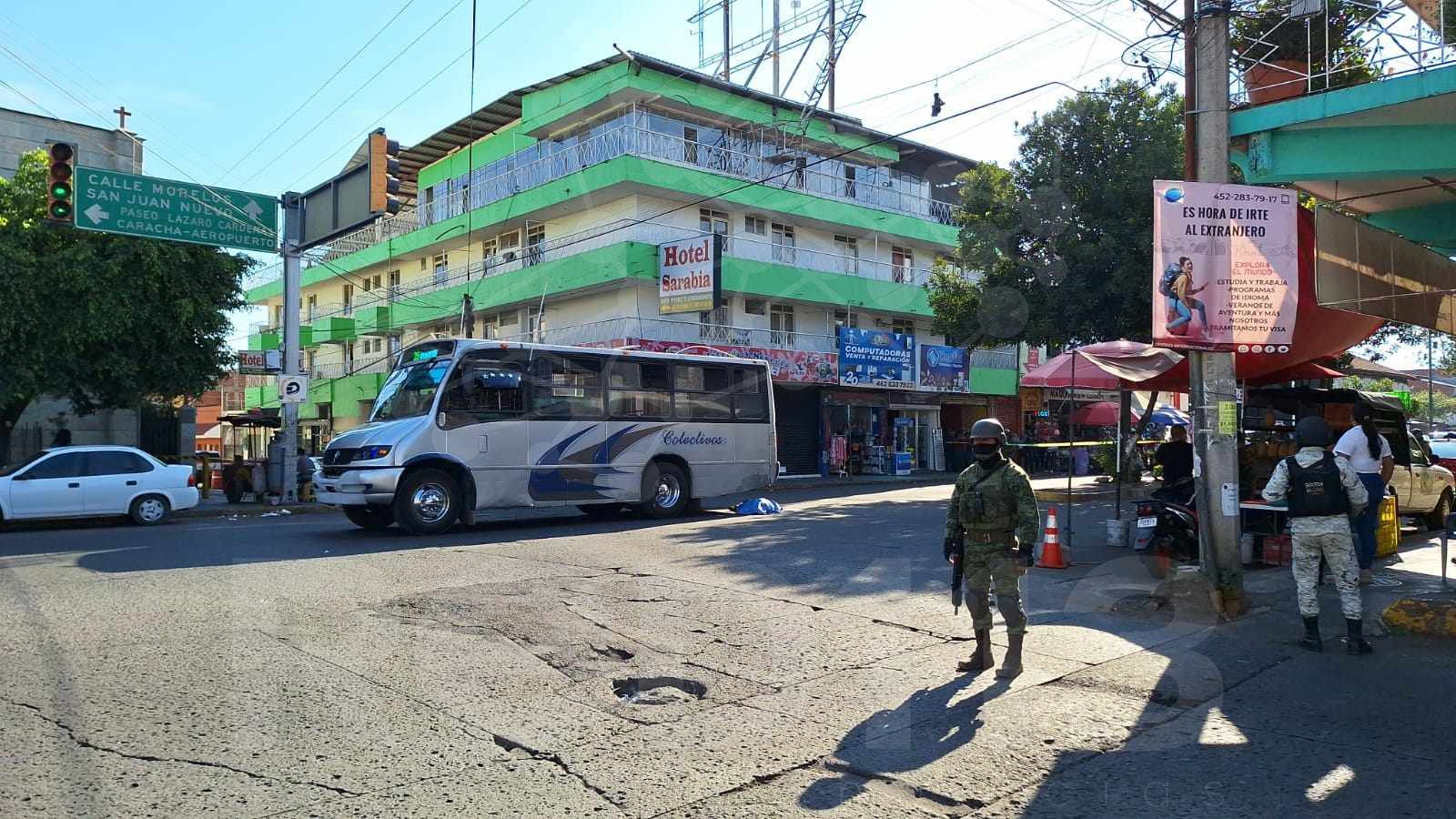 Uruapan, Mich.- 04 de abril de 2024.- Una mujer de la tercera edad murió al ser arrollada por un camión del servicio público de la línea Colectivos de Uruapan, frente al templo de Cristo Rey, en la colonia Ramón Farías.