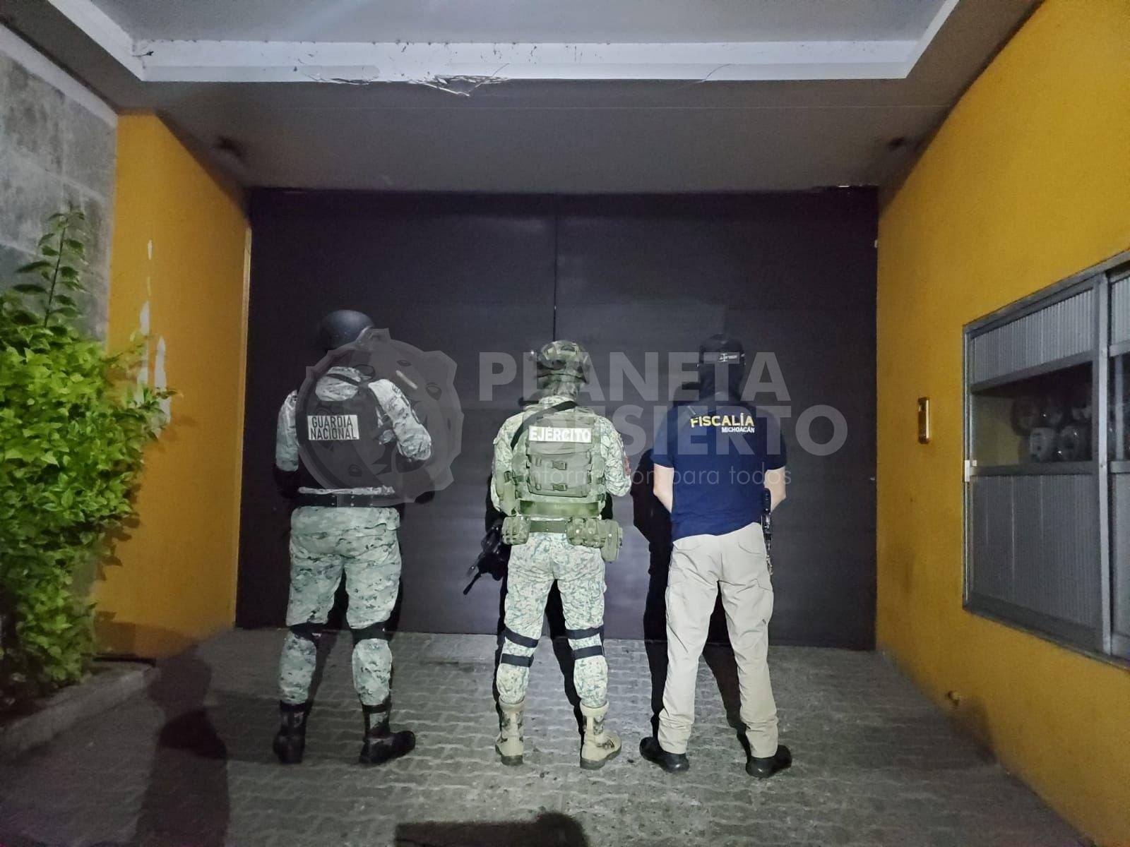 Morelia, Mich.- 26 de septiembre de 2025.-La Fiscalía General del Estado de Michoacán (FGE) aseguró 904 dosis de narcótico y equipo táctico durante la ejecución de un cateo, en un inmueble ubicado en la colonia Los Ejidos de Morelia; ahí fueron detenidas dos personas.