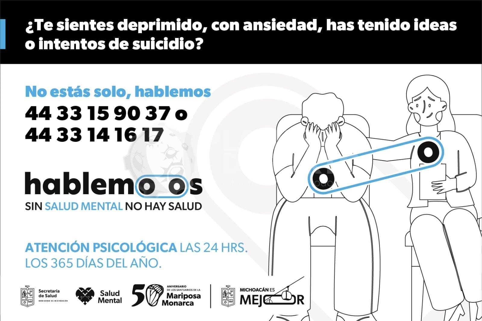 Cualquier persona que necesite atención psicológica puede llamar a cualquier hora del día, los 365 días del año a los teléfonos 443 314 1617 y 443 315 9037. No importa su edad ni su lugar de origen, la atención es completamente confidencial y personalizada.