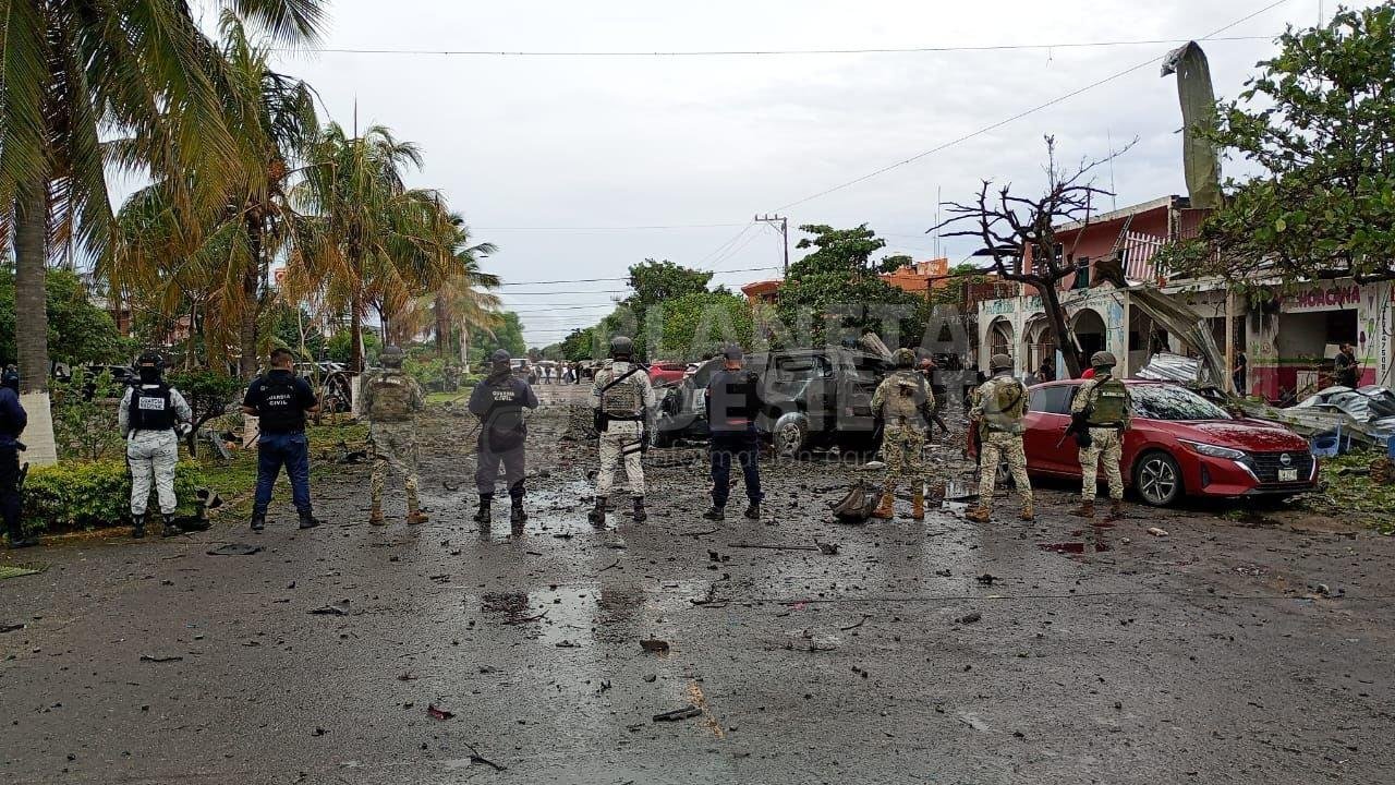 Coahuayana, Michoacán, 6 de diciembre de 2025.- La Guardia Nacional, la Secretaría de la Defensa Nacional, la Secretaría de Marina y la Secretaría de Seguridad Pública estatal, mantienen la seguridad y el control del municipio de Coahuayana, ante un artefacto explosivo accionado.