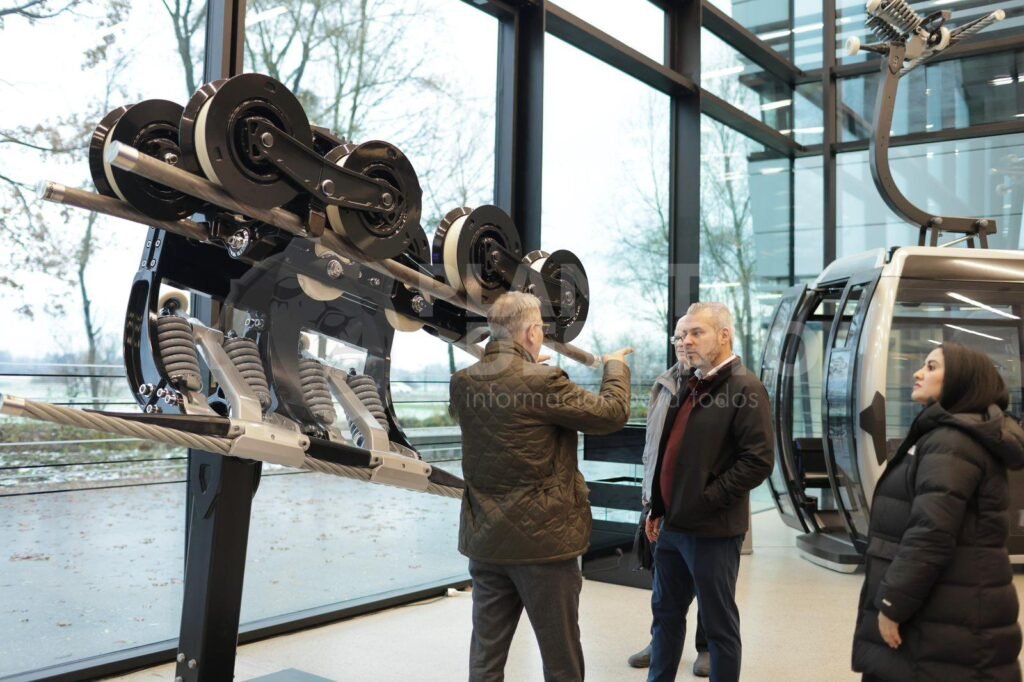 Acompañado de la secretaria de Desarrollo Urbano y Movilidad, Gladyz Butanda Macías, y del CEO de Doppelmayr en México, Konstantinos Panagiotou, el mandatario estatal visitó la fábrica de electromecánica ubicada en Wolfurt, Austria, para verificar la calidad tecnológica y de seguridad que brindan los equipos de Doppelmayr.