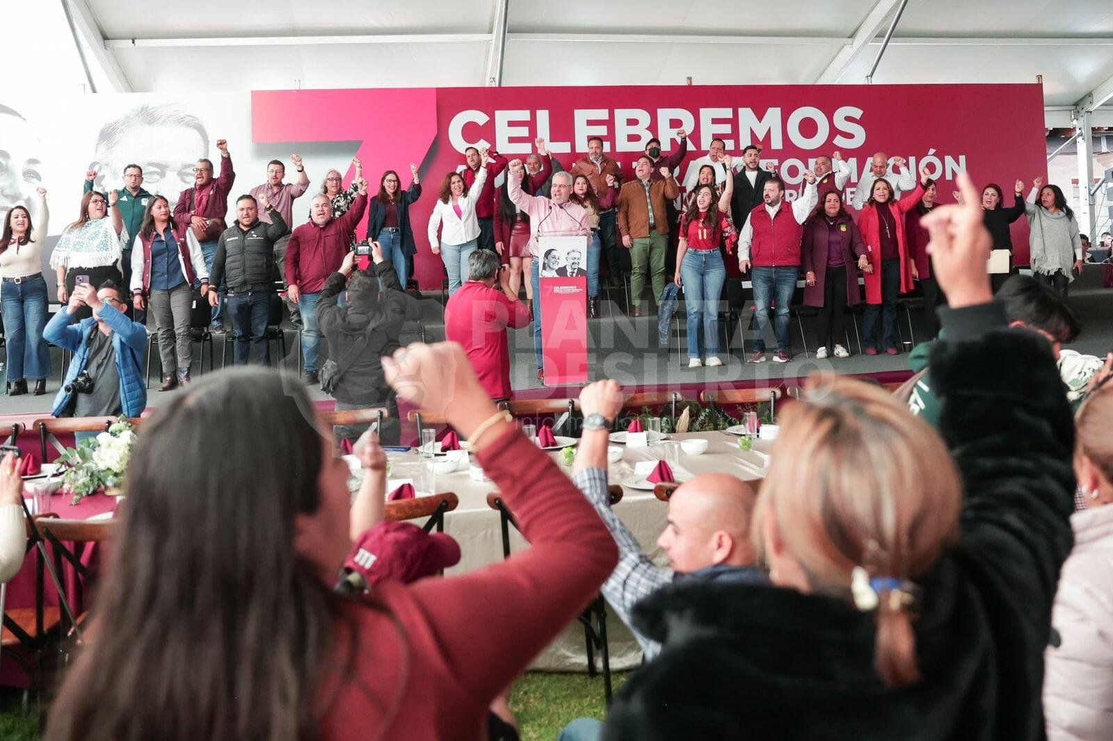 El mandatario estatal convocó a presidentes de comités seccionales y bases de Morena a celebrar juntos el séptimo aniversario del movimiento de la Cuarta Transformación, acompañando a la presidenta Sheinbaum Pardo el próximo 6 de diciembre en el Zócalo de la Ciudad de México.