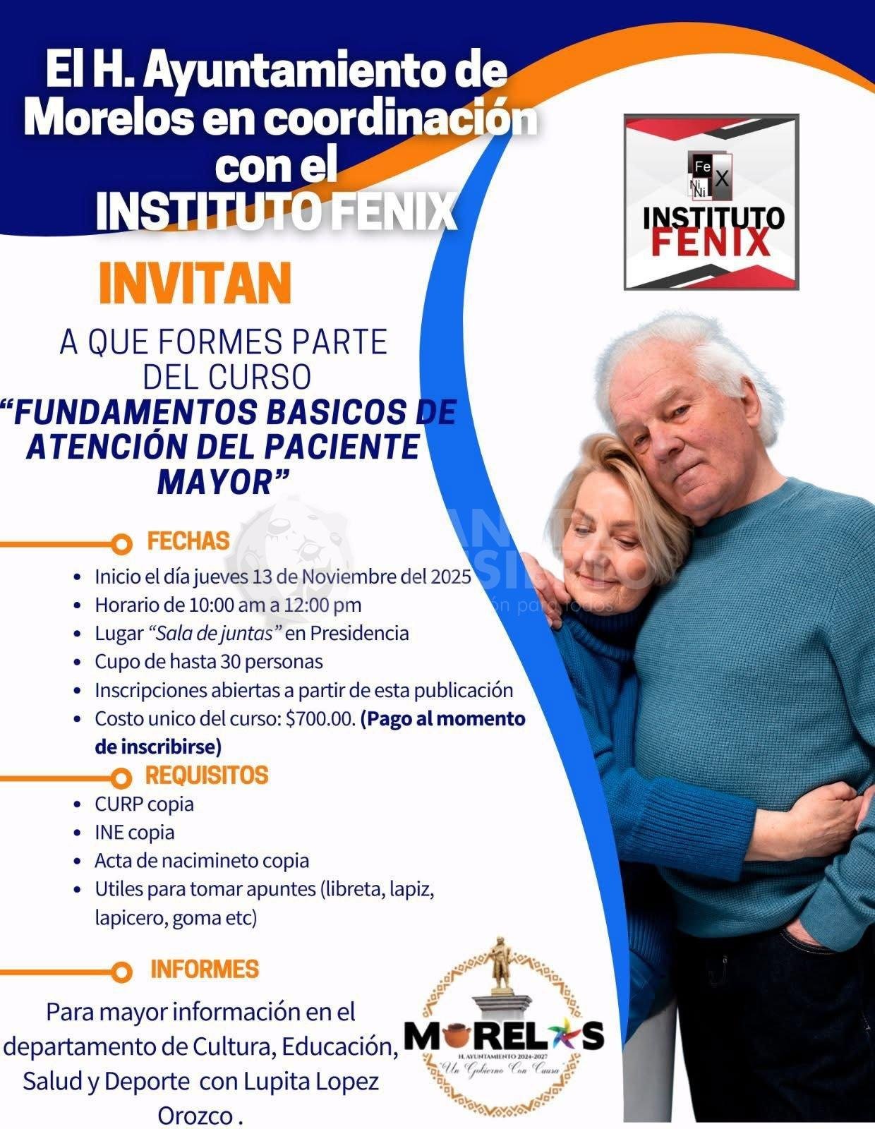Villa Morelos, Michoacán, a 10 de noviembre 2025.- Con el objetivo de brindar herramientas prácticas y teóricas a las personas interesadas en el cuidado y atención de adultos mayores, el Ayuntamiento de Morelos, en coordinación con el Instituto Fénix, impulsa el curso “Fundamentos Básicos de Atención del Paciente Mayor”.