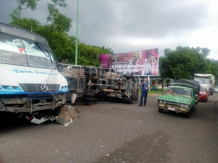 Tras solo sucedió la camioneta salió proyectada en contra de un camión del servicio urbano de la línea Tata Lázaro y terminó volcada. La situación fue alertada a las corporaciones de auxilio, mismas que acudieron para atender la emergencia.