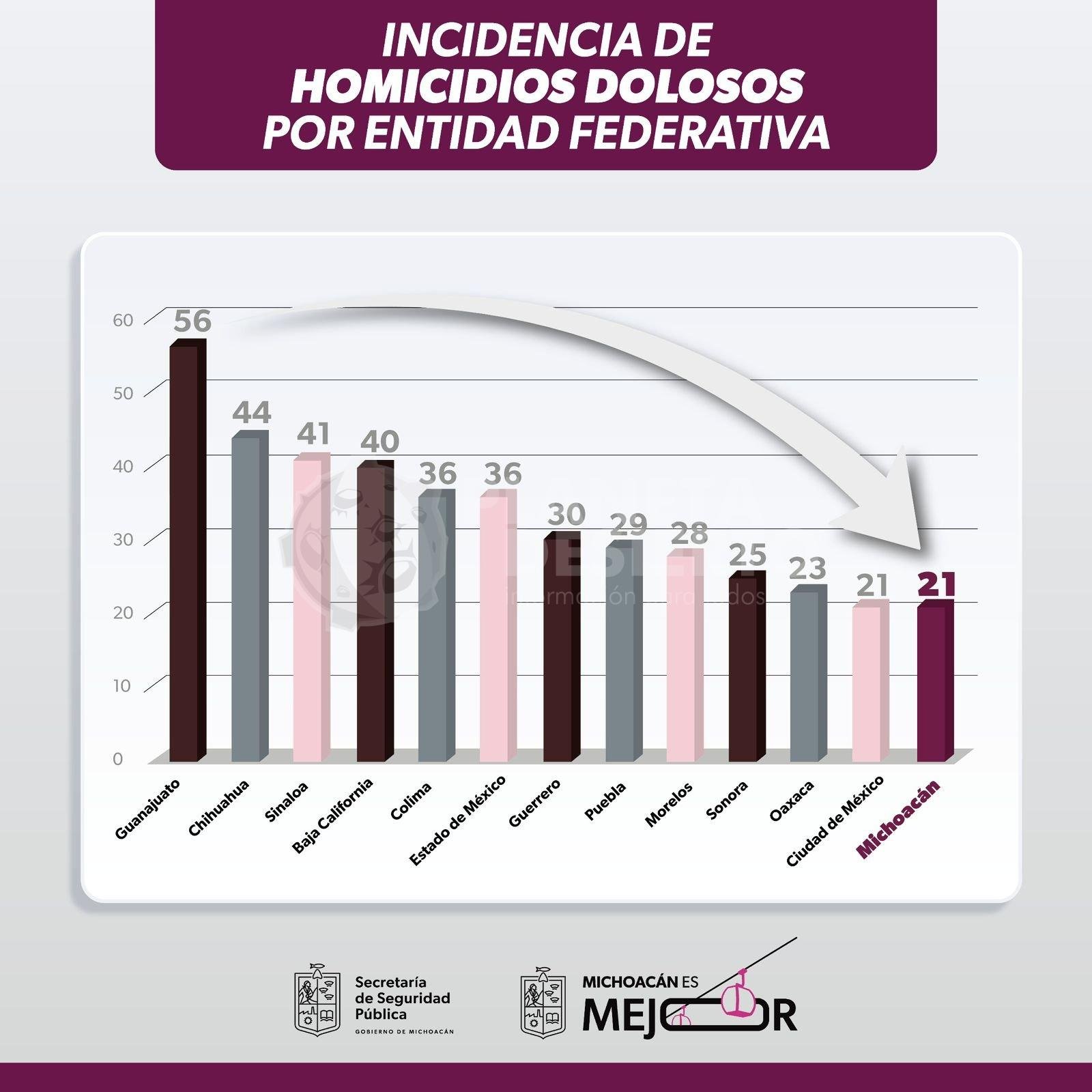 Comienza a rendir frutos el Plan por la Paz y la Justicia: Michoacán sale del top 10 en homicidios dolosos