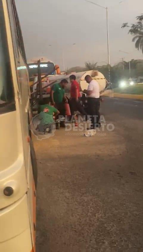 Al lugar se trasladaron Bomberos para atender la situación, revisaron a los pasajeros de la unidad de la marca volvo, de color blanco con franjas naranjas y número económico 905, confirmando que no había personas heridas.