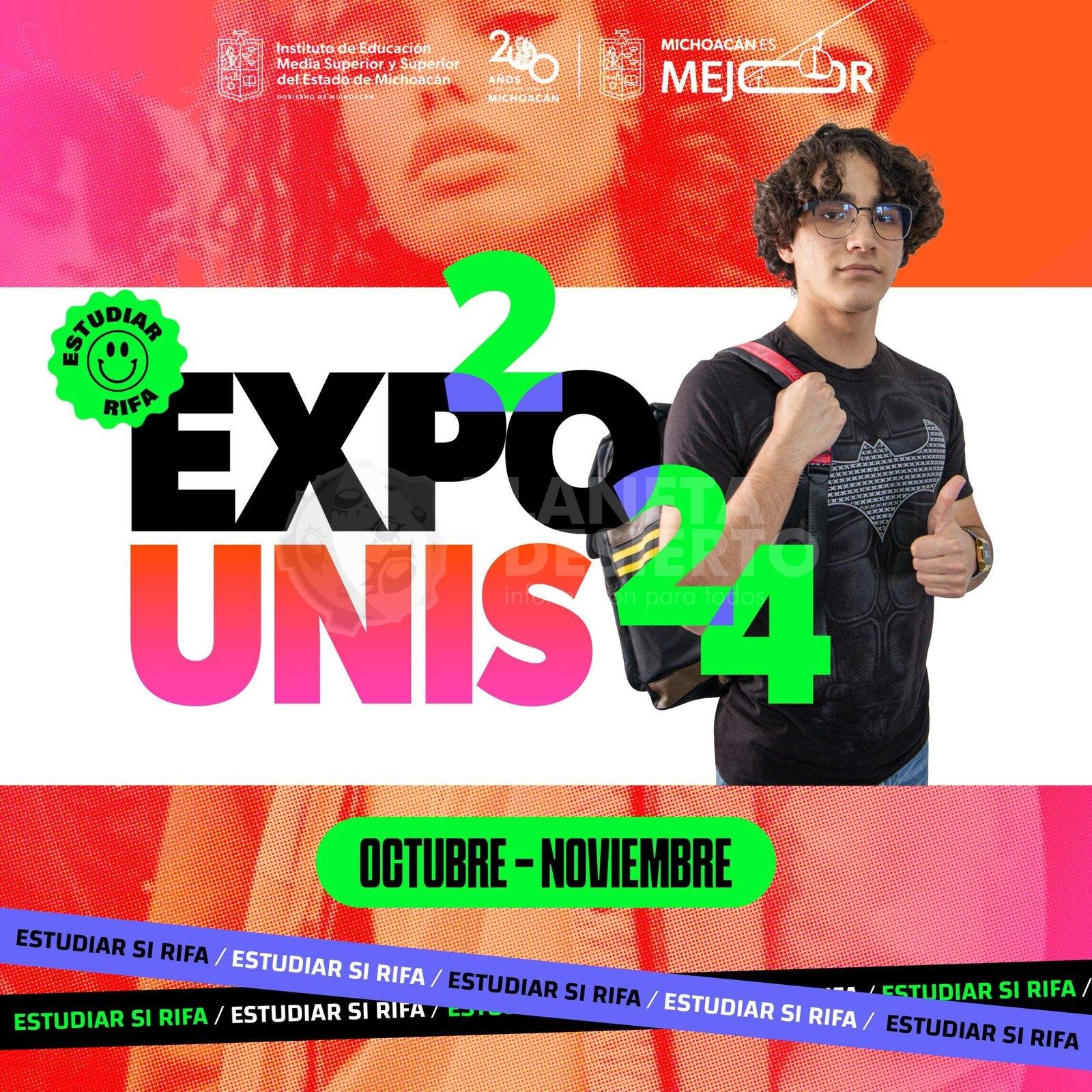 Durante este mes de octubre, Múgica será el primer municipio a donde llegará la ExpoUnis 2024, seguido de Tacámbaro (17), Zamora (22), Pátzcuaro (29) y Apatzingán (31); mientras que, en noviembre visitará Uruapan (5), Tangancícuaro (7), Sahuayo (17), Lázaro Cárdenas (14), Morelia (21), La Piedad (26) y Los Reyes (28).