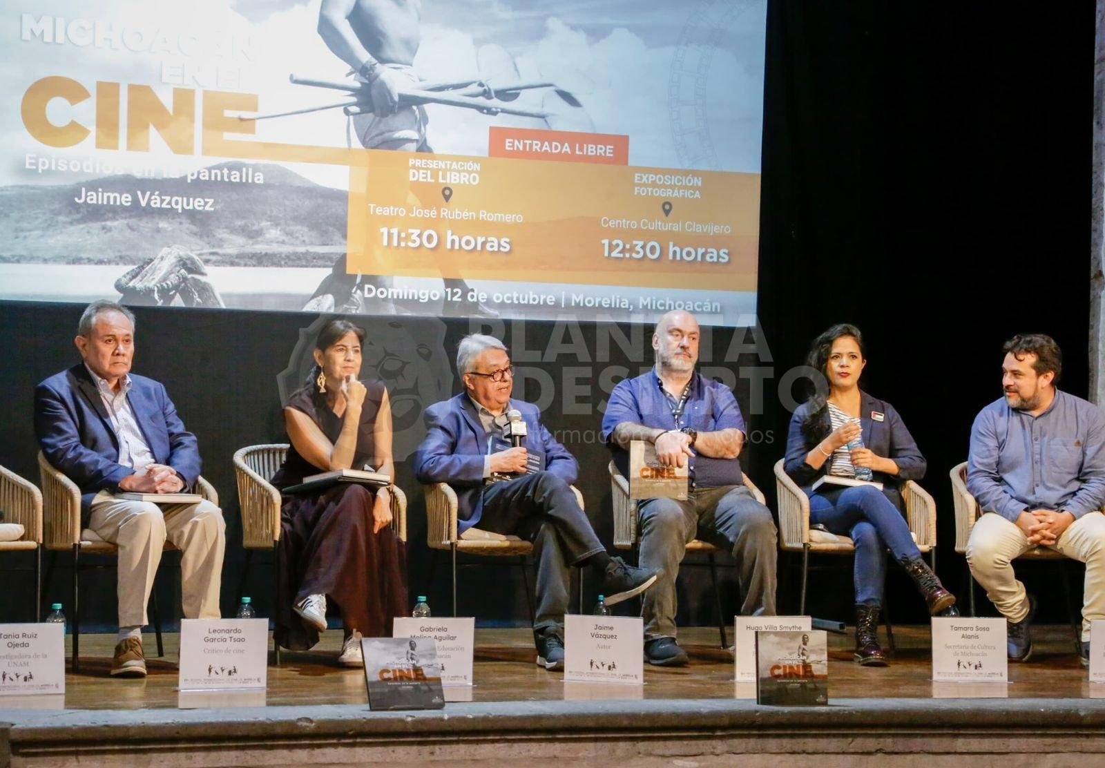 El libro coeditado con Huella Digital fue presentado en el teatro José Rubén Romero, donde participaron la secretaria de Cultura, Tamara Sosa; el productor de cine, Hugo Villa Smythe; el crítico de cine, Leonardo García; la directora deneral del FICM, Daniela Michel; y el director de Cuarta República, Carlos Márquez.