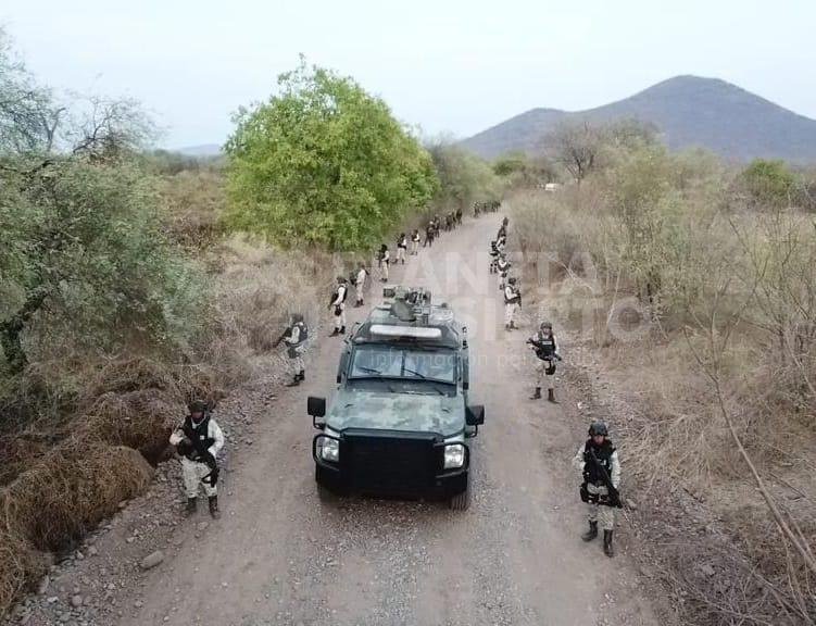Apatzingán, Mich.- 20 de Junio de 2023.- La Secretaría de la Defensa Nacional a través de las comandancias de la XII Región Militar y 43/a. Zona Militar, en el marco de la Estrategia Nacional de seguridad Pública y la política de Cero Impunidad del gobierno federal, ha desplegado 400 elementos del Ejército Mexicano para reforzar la seguridad, coadyuvar a preservar y garantizar la libertad, el orden y la paz pública en las comunidades de Llano grande, Las Bateas y El Tepetate del municipio de Apatzingán.