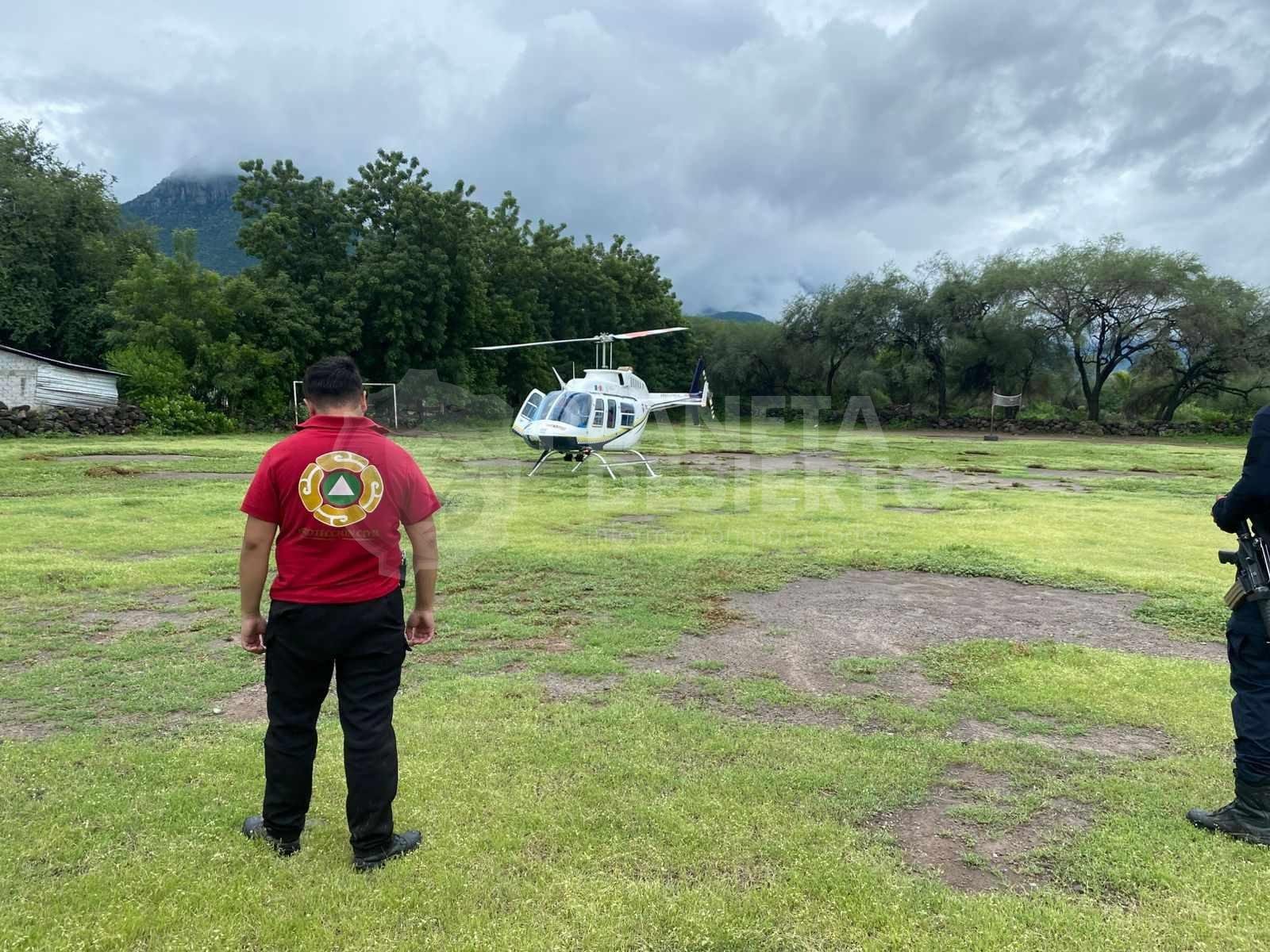 Dirección de Servicios Aéreos salva a 2 cortadores de limón atrapados en inundación en Parácuaro
