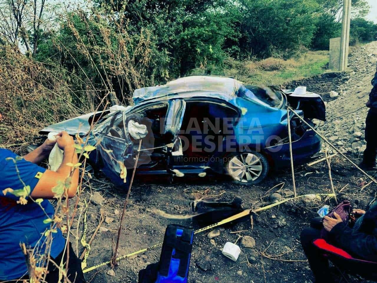El aparatoso accidente se registró a la altura de la comunidad del crucero de Las Yeguas, sitio en el que un vehículo Volkswagen de color azul salió de la carpeta asfáltica, volcó y terminó de nuevo sobre sus cuatro llantas.