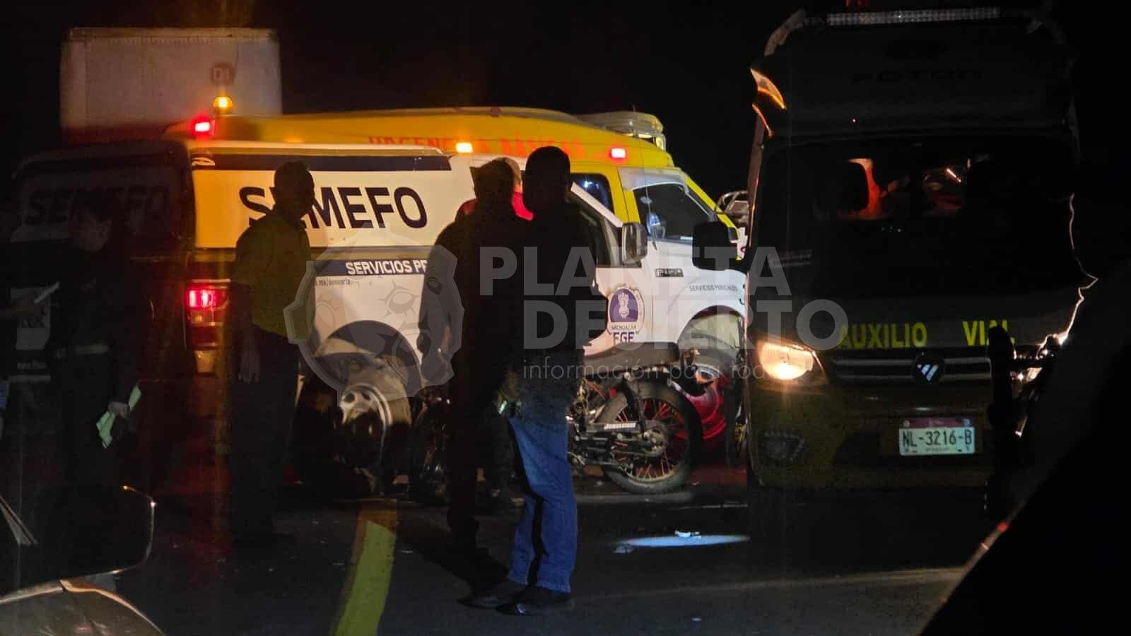 Zamora, Mich.- 29 de octubre de 2025.- La noche del miércoles, en la carretera Zamora – La Barca se registró un choque de frente entre dos motocicletas el cual dejó como saldo dos hombres sin vida y cuantiosos daños materiales.