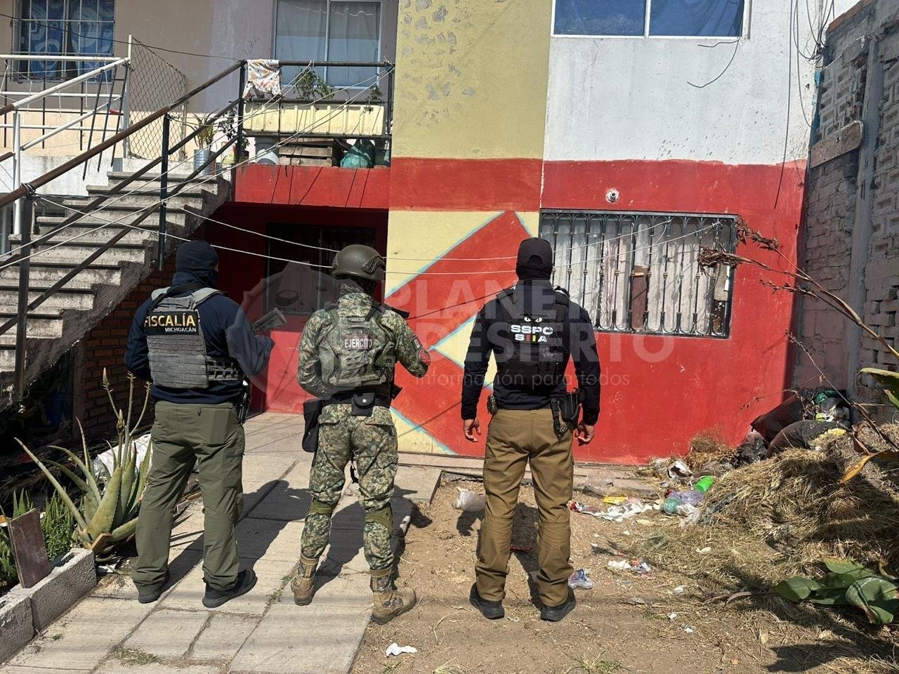 En una segunda acción operativa, efectuada en un inmueble ubicado en la calle Tres Hermanos, del fraccionamiento Hacienda del Sol, en el municipio de Tarímbaro, se aseguraron 312.5 dosis de metanfetamina, equivalentes conforme a lo establecido en la Ley General de Salud. Durante esta diligencia fue detenida María Guadalupe “N”.