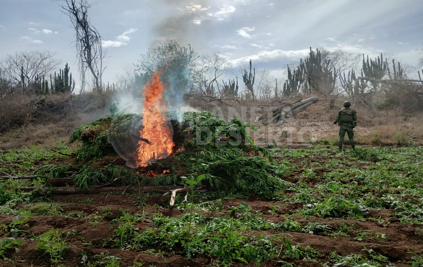 En Chihuahua, elementos del Ejército Mexicano y FGR incineraron 934 kilos de marihuana, 20 gramos de cocaína, 60 gramos de heroína, 3.4 kilos de metanfetamina, 30 plantas de amapola y 30 plantas de marihuana.
