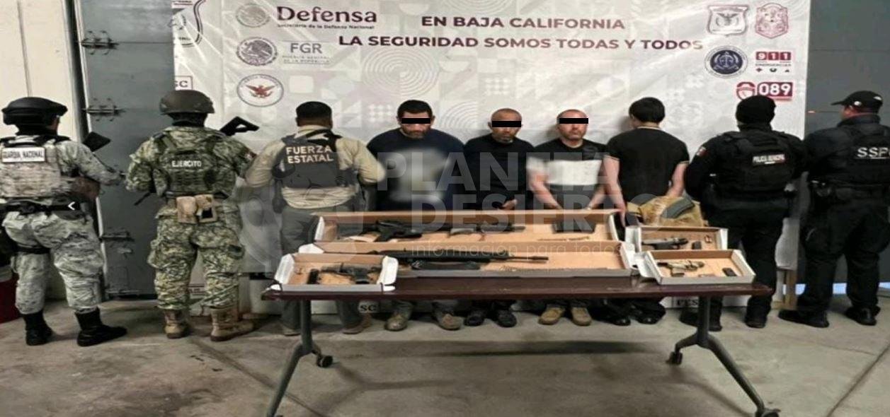 En Tijuana, se detuvo a cuatro personas, se aseguraron cinco armas de fuego, seis cargadores, 115 cartuchos y un chaleco táctico.