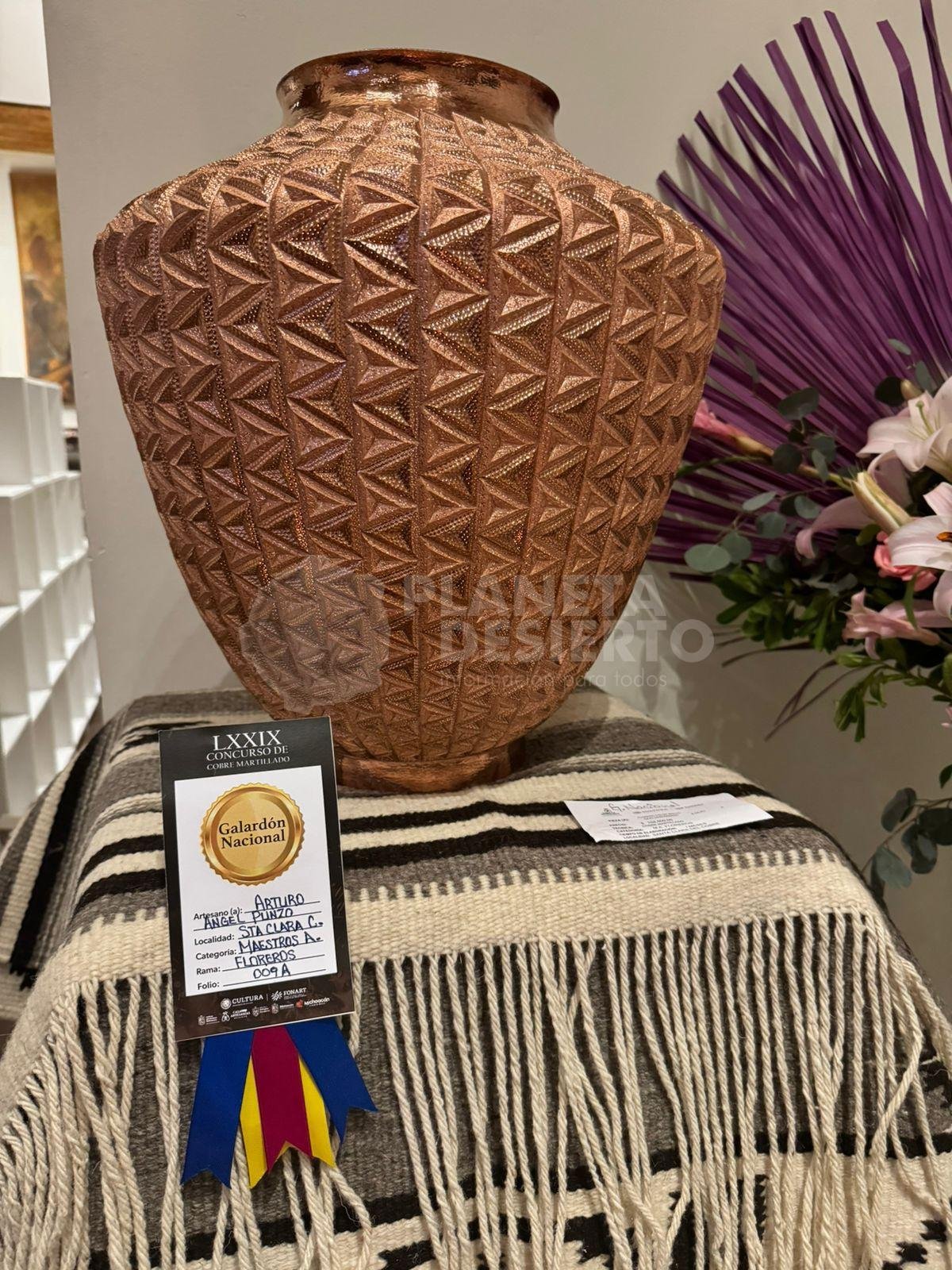 Salvador Escalante, 10 de agosto de 2024.- Más de 400 piezas de cobre de la 79 edición del Concurso Local del Cobre Martillado se encuentran a la venta en el Museo del Cobre en el Pueblo Mágico de Santa Clara, en el municipio de Salvador Escalante.