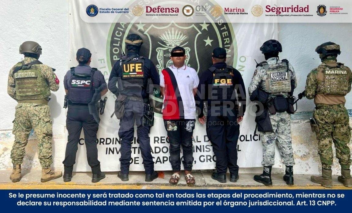 Resultado de trabajos de investigación, en Acapulco, Guerrero, elementos de la Secretaría de la Defensa Nacional (Defensa), Secretaría de Marina (Semar), Fiscalía General de la República (FGR), Guardia Nacional (GN), Secretaría de Seguridad y Protección Ciudadana (SSPC), junto con la Fiscalía General del Estado (FGE) y Secretaría de Seguridad Pública (SSP), ambas de Guerrero, cumplimentaron una orden de aprehensión contra un hombre por el delito de homicidio calificado, en agravio de tres personas.