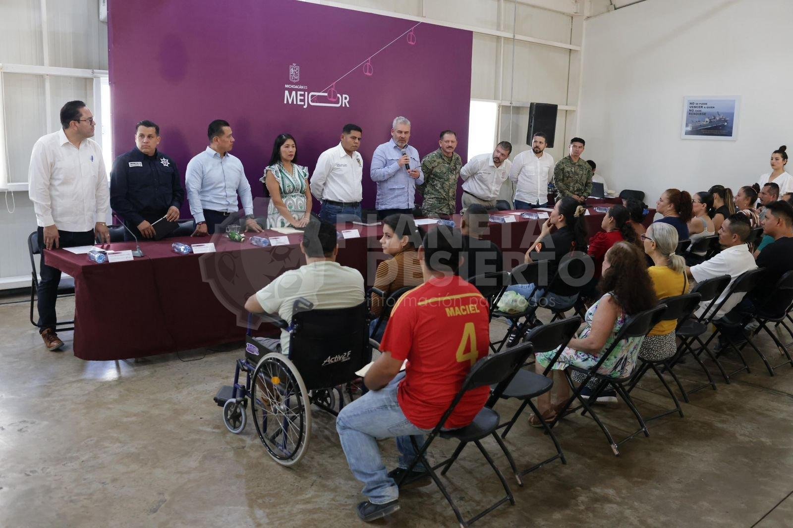 Coahuayana, Michoacán, 15 de diciembre de 2025.- El gobernador Alfredo Ramírez Bedolla entregó apoyos económicos para la rehabilitación de viviendas y comercios de víctimas afectados por la explosión del pasado 6 de diciembre en el municipio de Coahuayana.