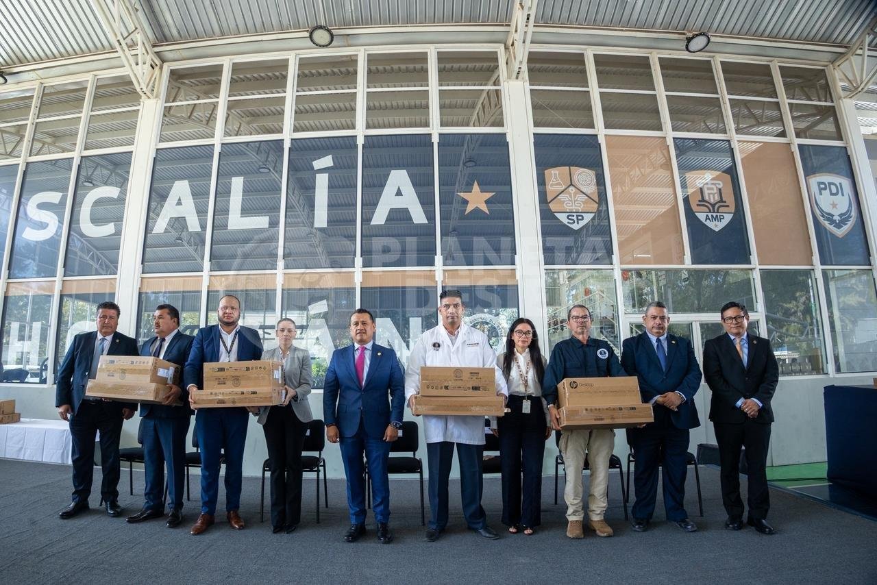 La entrega de los equipos contó con la presencia de la tiitular de la Contraloría de Fiscalía General del Estado, Alondra Godínez Navarrete; el Vicefiscal de Control Interno y Evaluación, José Ismael Cervantes Rodríguez; la Vicefiscal de Delitos de Alto Impacto, María Cristina Guzmán Gutiérrez; el Coordinador de la Policía de Investigación, Julio Meza Gaona; y el Director General de Tecnologías de la Información, Planeación y Estadística (DGTIPE), Jorge Luis Gallardo Jacobo.