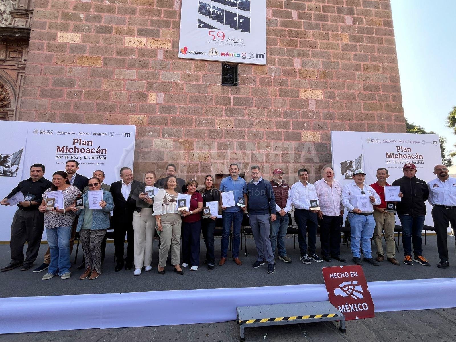 Morelia, Michoacán, 26 de noviembre de 2025.- En el marco de la Feria del Bienestar, realizada como parte del Plan Michoacán por la Paz y la Justicia, los gobiernos federal y estatal entregaron más de 40 distintivos de calidad y origen a productoras y productores de la entidad, reconociendo su trabajo, compromiso y el valor que aportan a la economía local.