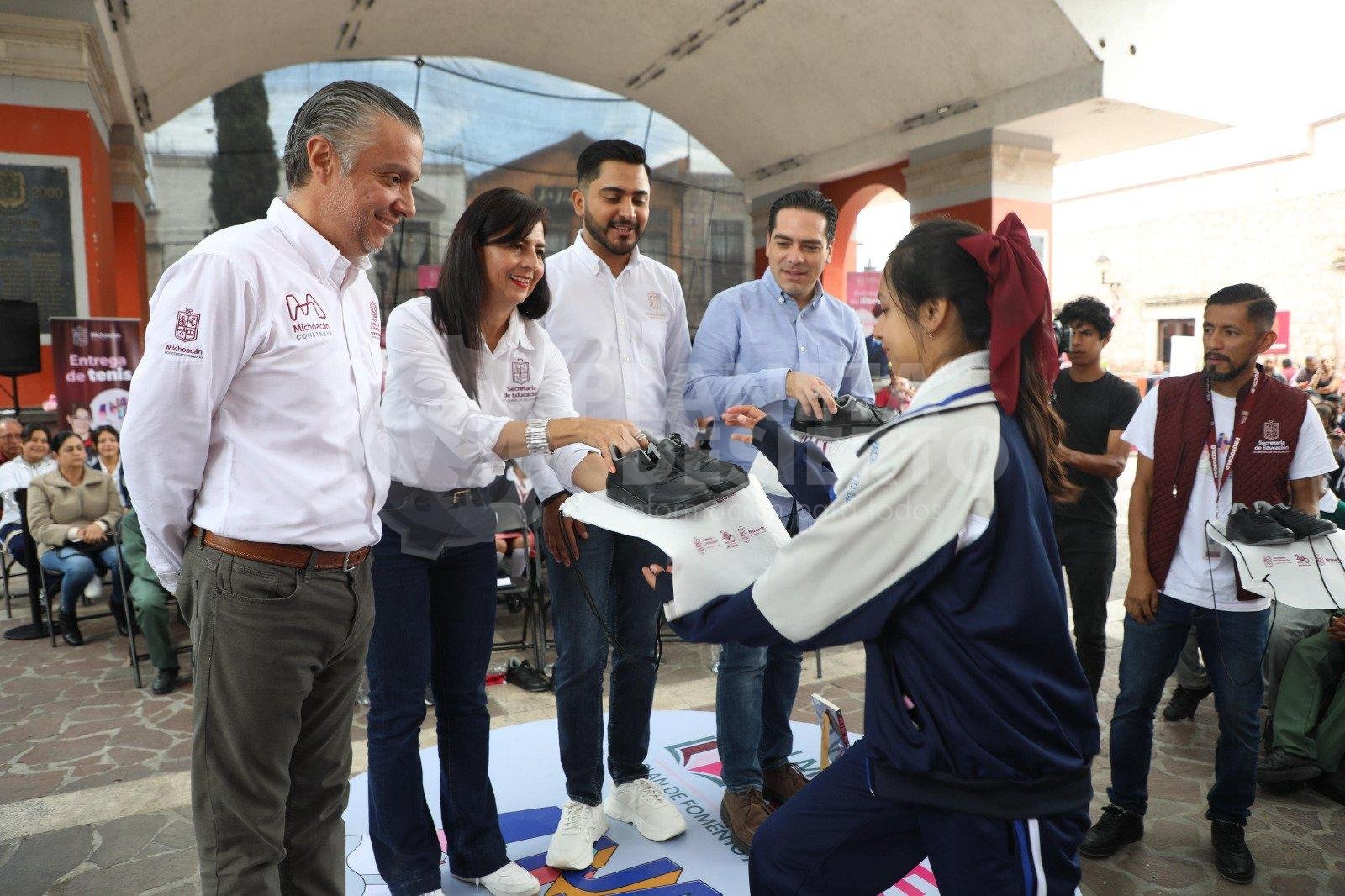 Entregan tenis, libros y obra educativa para miles de alumnos de Huandacareo #Estado