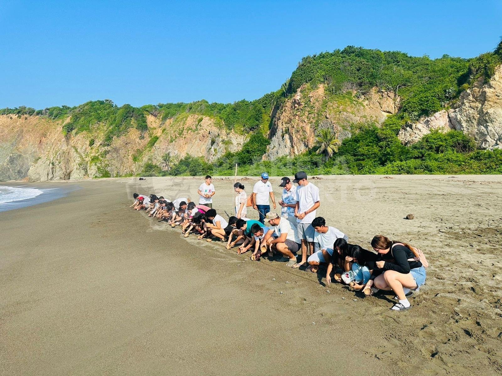 Lázaro Cárdenas, Michoacán, 27 de octubre de 2024.- Más de 100 estudiantes, así como personal docente, administrativo y directivo del Centro de Educación Media Superior a Distancia (Cemsad) Caleta de Campos, participaron en la liberación de tortugas de la especie Golfina, en el campamento tortuguero en las playas de la comunidad de Teolán, Michoacán.