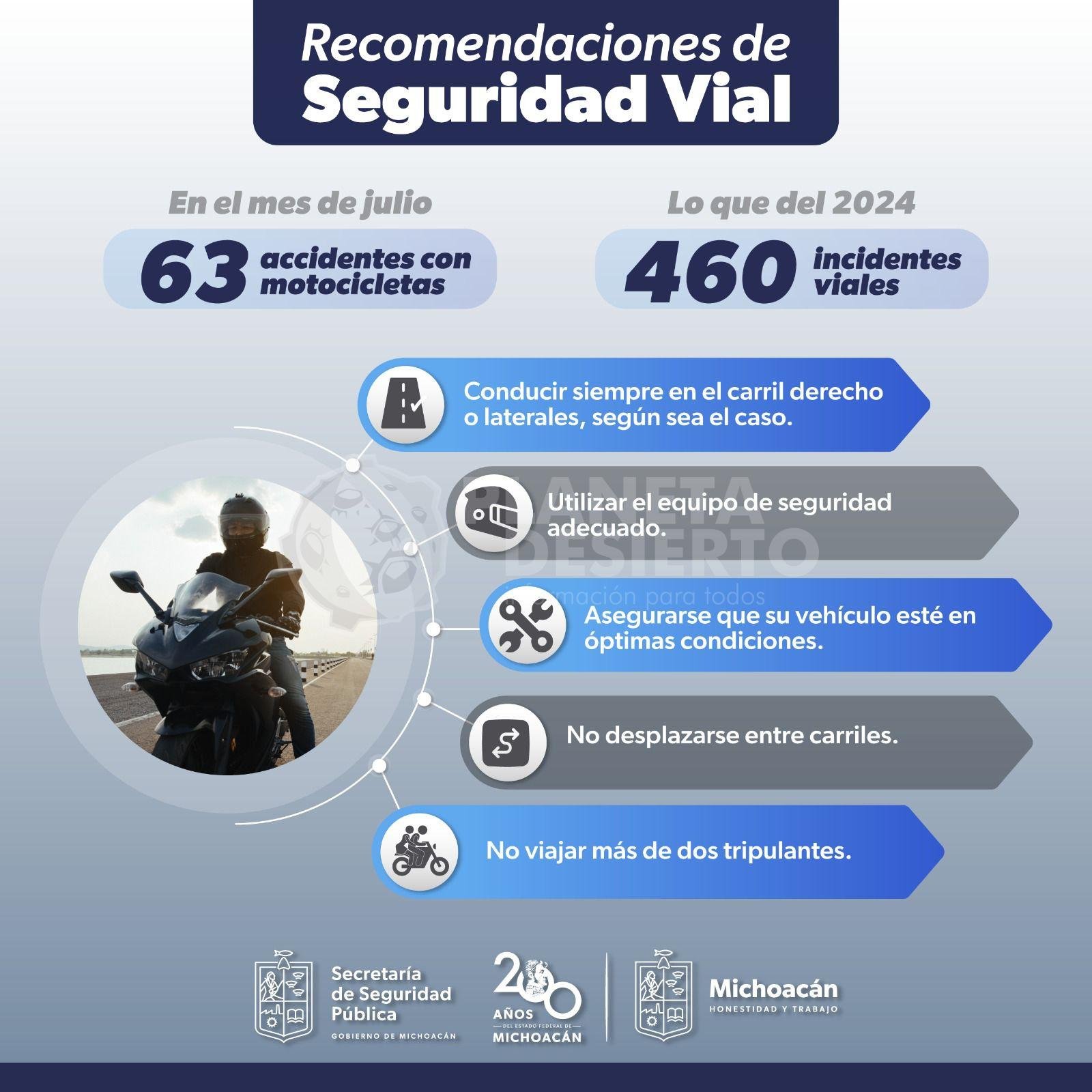 En lo que va del año se han registrado 467 accidentes viales en el estado, de los cuales, tan solo en el mes de julio se registraron 63 donde estuvo involucrada una motocicleta, debido al exceso de velocidad o la falta de prudencia de los conductores,