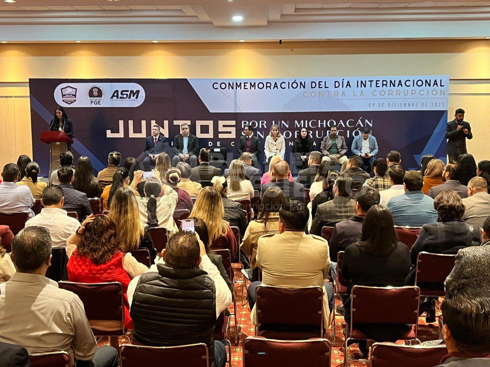 Morelia, Michoacán, a 9 de diciembre de 2025.- En el marco del Día Internacional contra la Corrupción, conmemorado este 9 de diciembre, la Fiscalía General del Estado de Michoacán (FGE), a través de la Fiscalía Especializada en Combate a la Corrupción (FECC), y la Auditoría Superior de Michoacán (ASM), encabezaron el encuentro “Juntos por un Michoacán sin Corrupción”, espacio de diálogo interinstitucional orientado a fortalecer la prevención, detección y sanción de prácticas corruptas en la entidad.