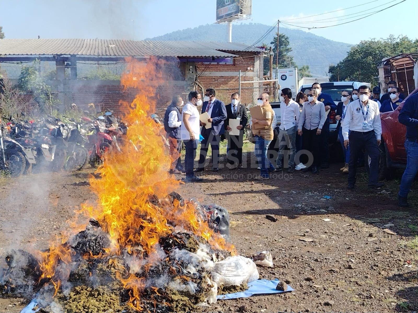La actividad se efectuó en coordinación con la Contraloría de la FGE, la Fiscalía Regional de Uruapan y la Coordinación General de Servicios Periciales, en estricto cumplimiento a los protocolos establecidos para el manejo y disposición final de sustancias ilícitas.