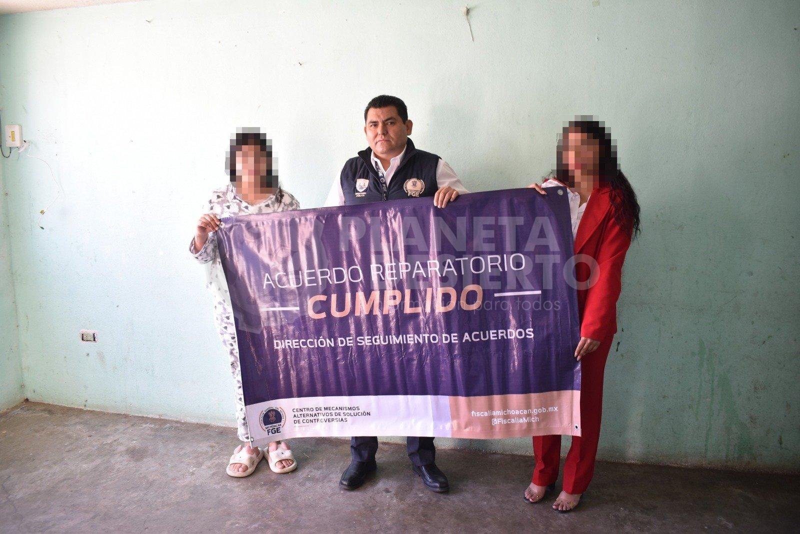 Morelia, Mich.-  15 de enero de 2026.– La Fiscalía General del Estado de Michoacán (FGE), a través del Centro de Mecanismos Alternativos de Solución de Controversias (CMASC), celebró un acuerdo reparatorio en favor de una mujer, víctima del delito de despojo de inmueble, ocurrido en el municipio de Tarímbaro.