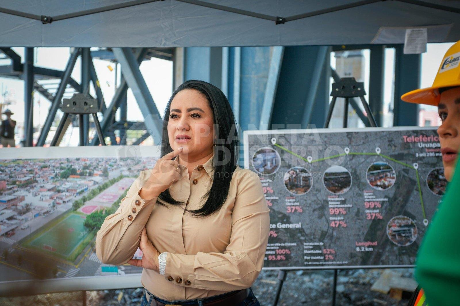 Gladyz Butanda y empresarios supervisan estaciones del teleférico de Uruapan