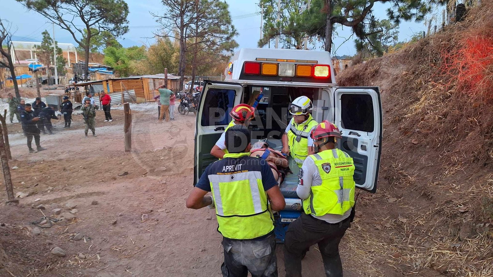 Por lo anterior al sitio se trasladaron policías, soldados y paramédicos de primera respuesta de Aprevit, quienes rescataron a la víctima y la trasladaron a un hospital; debido a que presenta dos balazos en una pierna y el tórax.