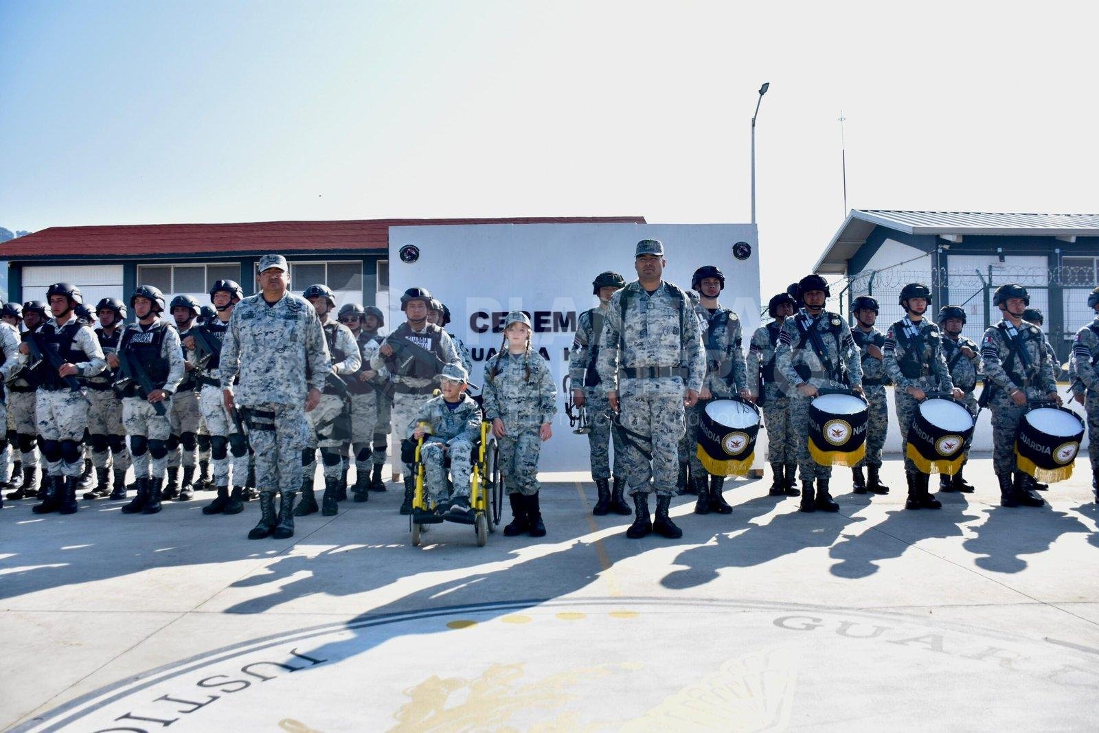 Acompañados de sus familiares, asistieron a su ceremonia de nombramiento como Guardias Honorarios por un día y junto a sus compañeros Guardias Nacionales, rindieron los honores a nuestro lábaro patrio.
