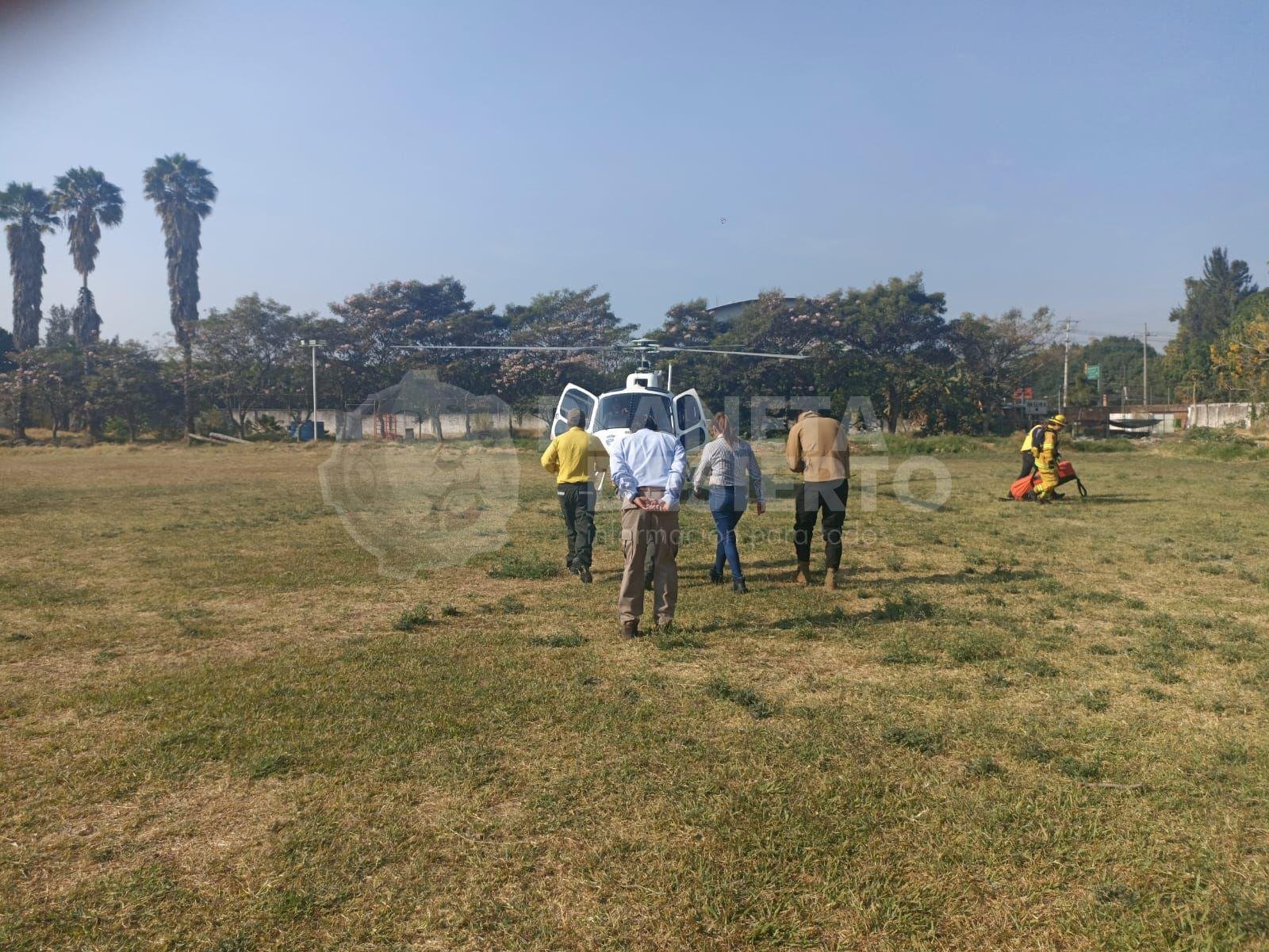 La aeronave se suma a los trabajos que realizan más de 150 brigadistas del Ayuntamiento, la Comisión Forestal de Michoacán (Cofom), Comisión Nacional Forestal (Conafor) y de voluntarios que desde ayer combaten el incendio; incluso algunos de ellos trabajaron durante la noche.