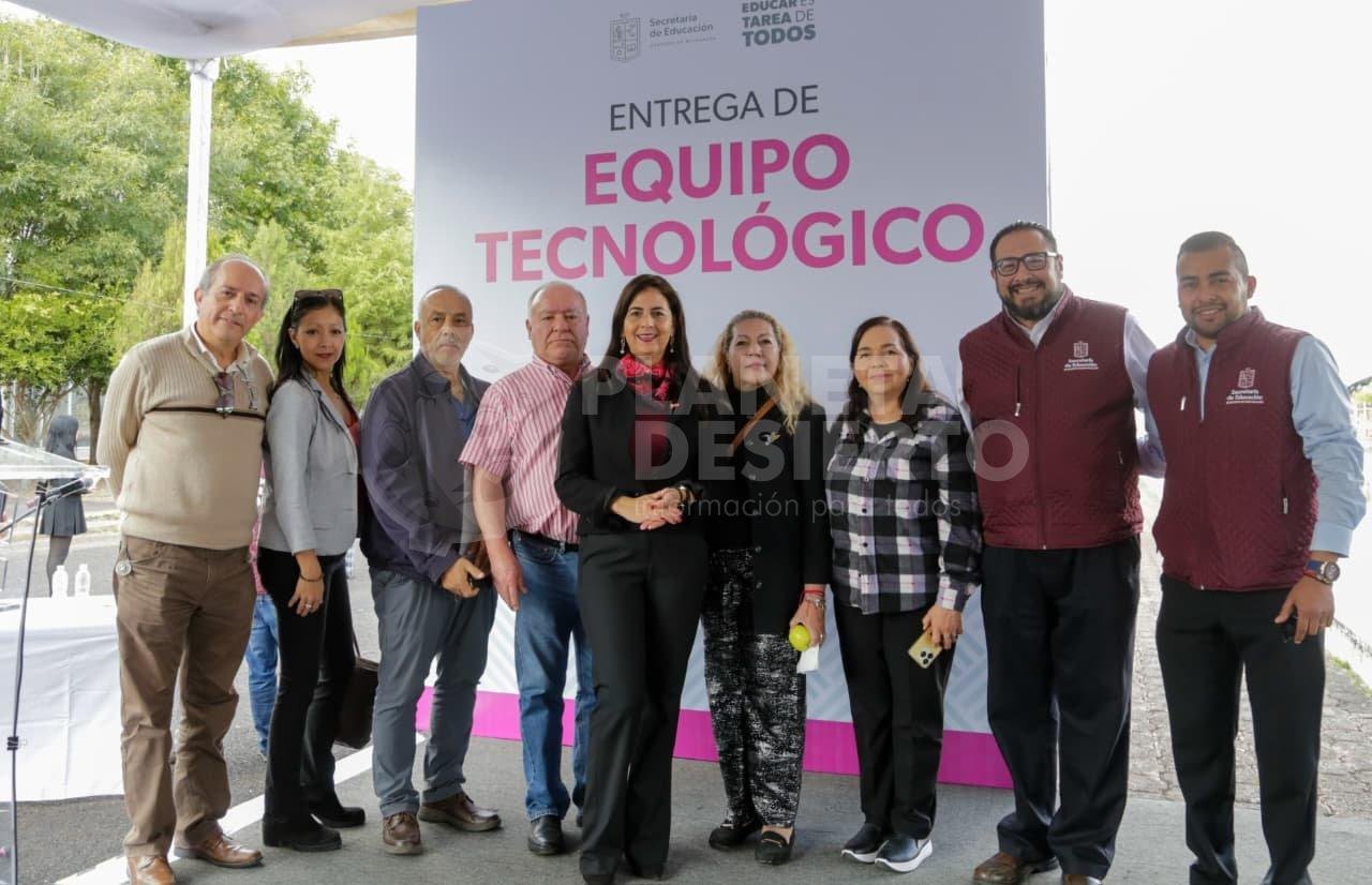 Morelia, Michoacán, 17 de diciembre de 2025.- Con el objetivo de fortalecer la operatividad administrativa en las escuelas y seguir con las acciones de prevención, la secretaria de Educación, Gabriela Molina, encabezó la entrega de 600 computadoras y 30 extintores para planteles de todas las regiones, con una inversión de 15 millones de pesos.