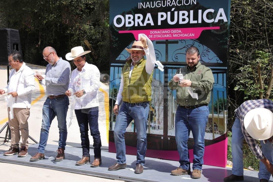 Zitácuaro, Michoacán, 26 de octubre de 2025.- El gobernador Alfredo Ramírez Bedolla inauguró la construcción de la calle La Herradura, en la comunidad indígena con autogobierno de Donaciano Ojeda, en el municipio de Zitácuaro, para beneficio de cientos de habitantes.