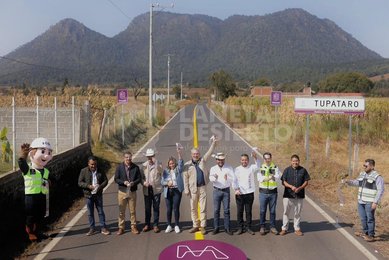 “Hoy venimos a constatar esta obra que le da una vialidad digna a Tupátaro que conecta con Cuanajo, y con la autopista Morelia-Pátzcuaro” señaló el mandatario.