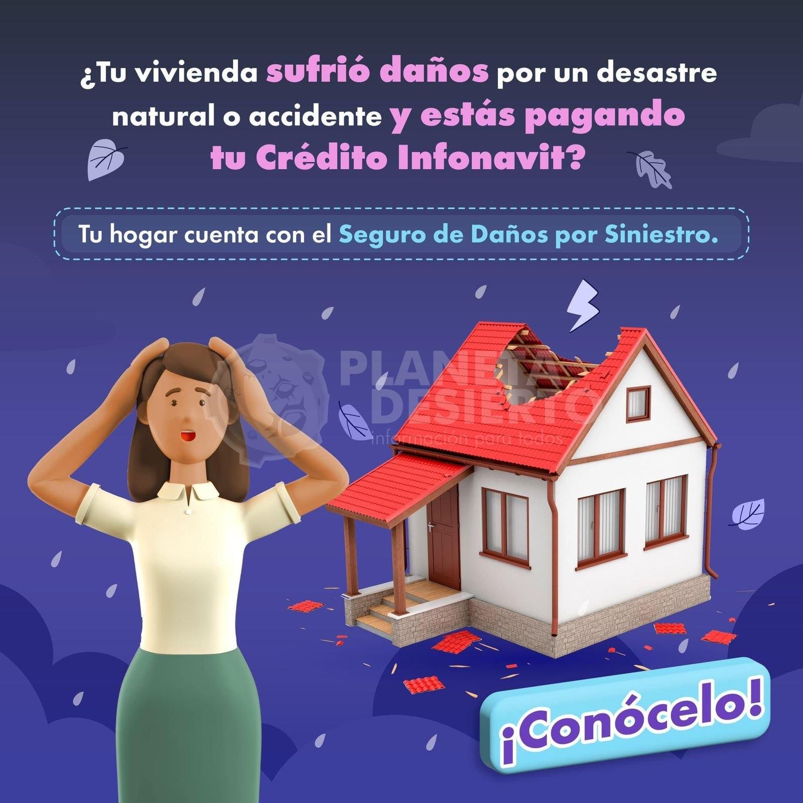 Además de las afectaciones causadas por sismos, el Seguro de Daños protege el patrimonio de los trabajadores ante huracanes, ciclones, inundaciones, vientos tempestuosos, caída de árboles, granizo o nieve, incendio, erupción volcánica, explosión o desplazamiento súbito de terreno.