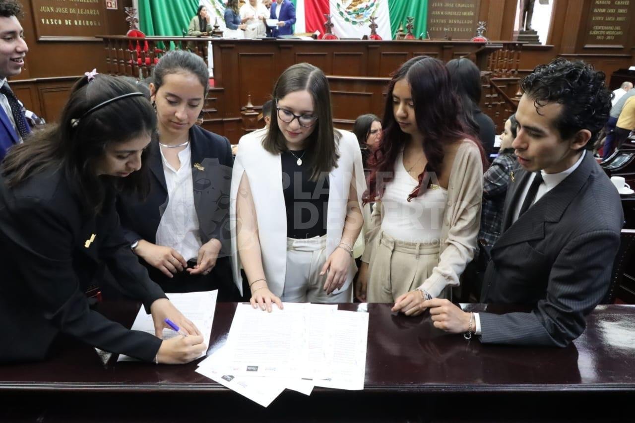 Morelia, Michoacán, 31 de octubre de 2025.- Al participar en el Parlamento Juvenil Incluyente 2025, jóvenes michoacanos abordaron la Tribuna del Congreso del Estado para plantear no sólo las problemáticas, sino para proponer las reformas legislativas que, a sus ojos, permitirán hacer de Michoacán un mejor estado para sus habitantes.