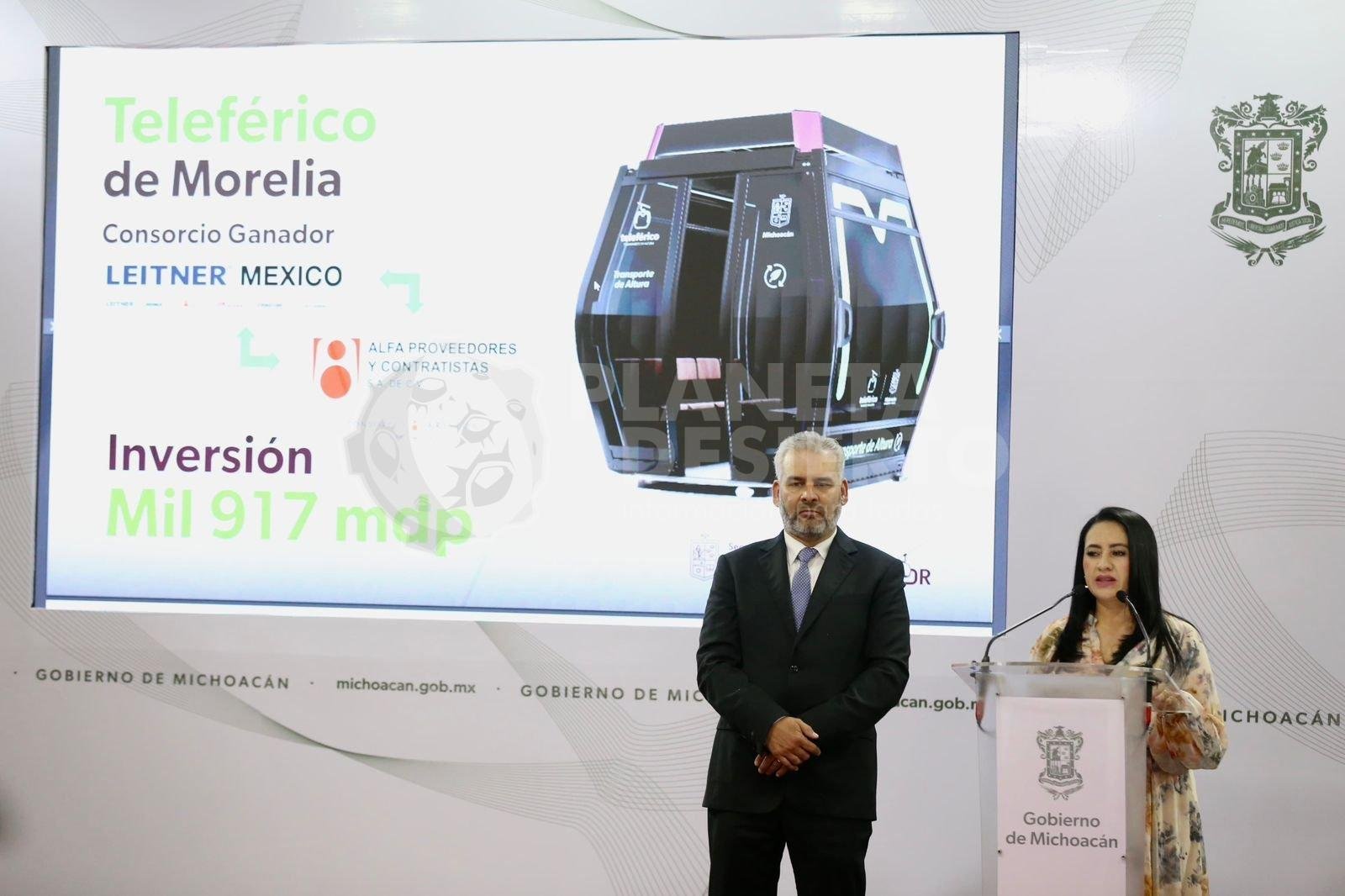 Morelia, Michoacán, 24 de septiembre de 2024.- Con una inversión estatal de mil 917 millones de pesos, el consorcio Leitner México y Alfa Proveedores y Contratistas será el encargado de la construcción del teleférico de Morelia, la cual tendrá una duración de dos años, informó la secretaria de Desarrollo Urbano y Movilidad, Gladyz Butanda Macías.