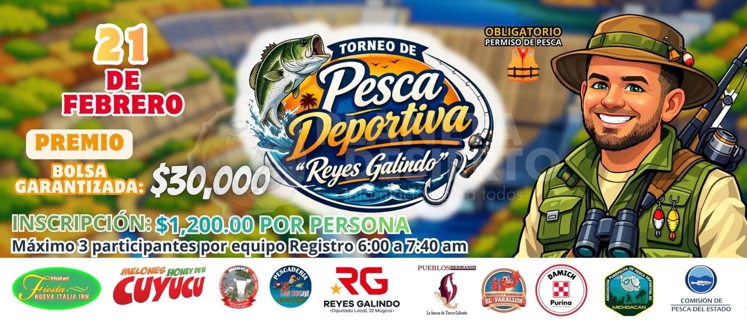 A través de sus redes sociales, el legislador Reyes Galindo dio a conocer la convocatoria para que quienes cuenten con permiso de pesca, se inscriban a este torneo y puedan ganarse hasta 30 mil pesos, bolsa garantizada para el equipo ganador.