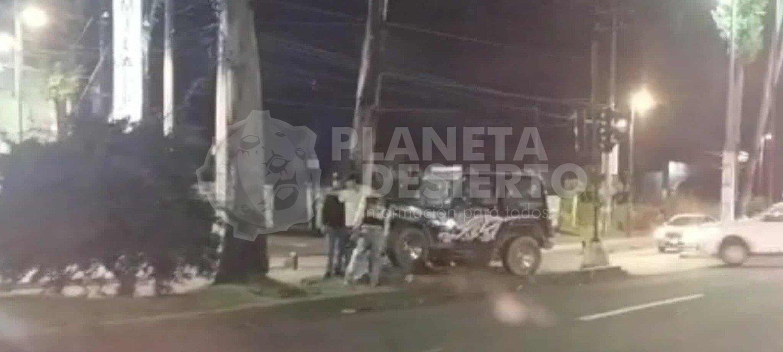 Morelia, Mich.- Domingo 12 de octubre de 2025.- Esta noche de domingo, un Jeep chocó contra un árbol de un camellón ubicado en la Avenida Francisco I. Madero Poniente de Morelia. El incidente sólo dejó daños materiales comentaron autoridades policiales.