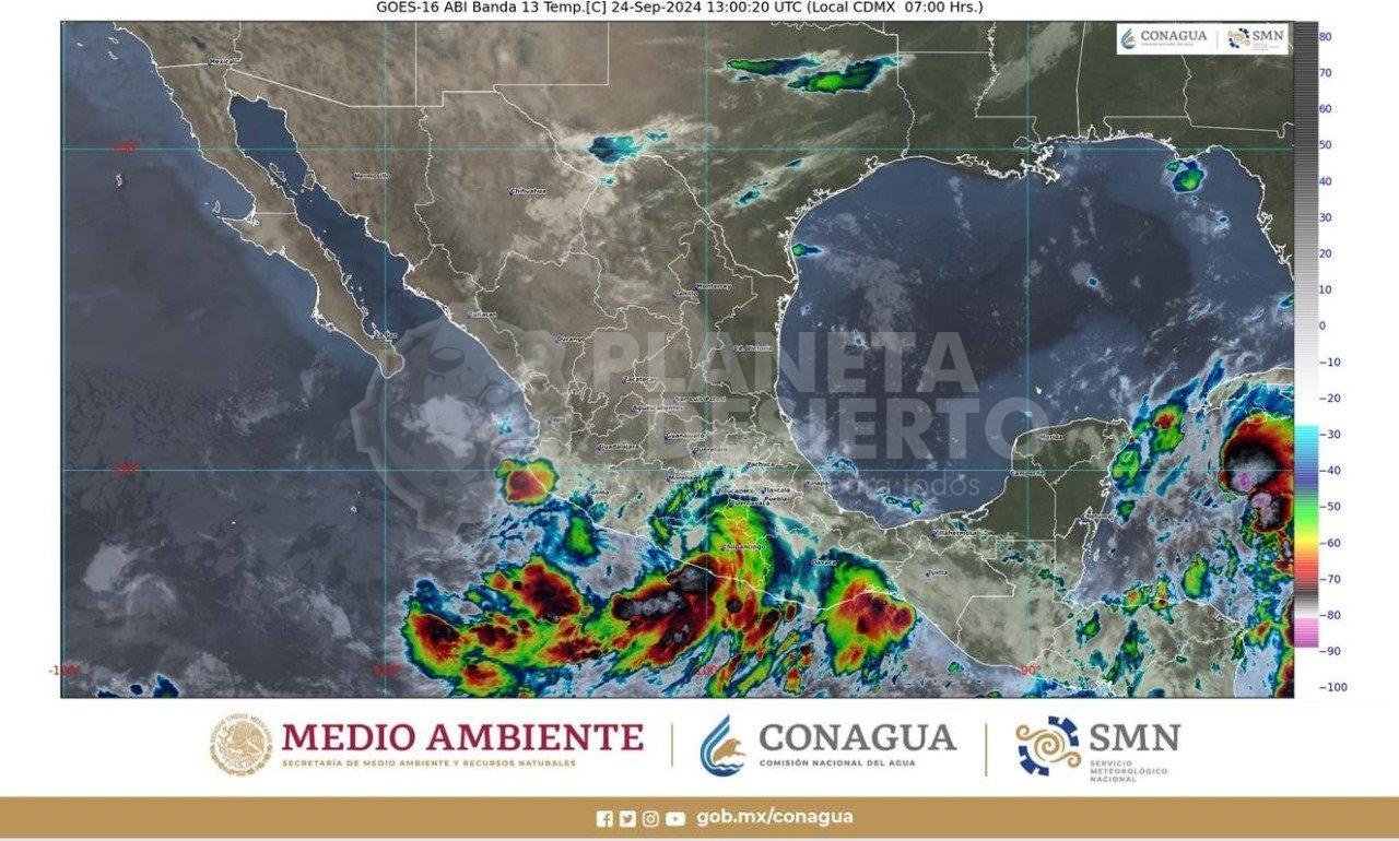 Ciudad de México, 24 de septiembre de 2024.- Durante este martes, el ciclón tropical John ocasionará lluvias puntuales extraordinarias (mayores a 250 milímetros [mm]) en Guerrero y Oaxaca; torrenciales (de 150 a 250 mm) en Chiapas y Veracruz, intensas (de 75 a 150 mm) en Michoacán y Puebla; además, reforzará el potencial de chubascos con lluvias fuertes en el centro del país, incluido el Valle de México.