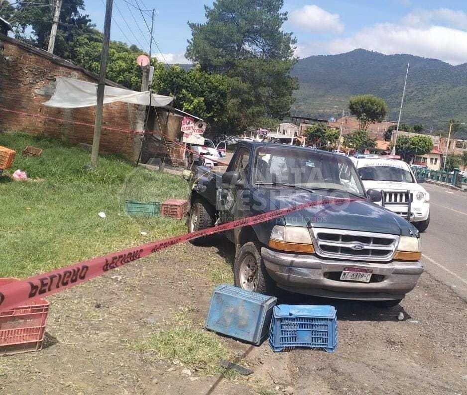 Joven al salir disparado de la batea de una camioneta durante choque, en Chilchota